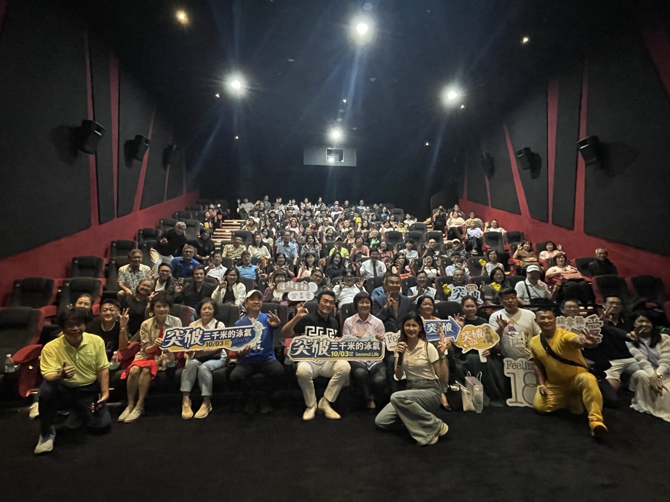 《突破: 三千米的泳氣》將於10月3日全台正式上映;上映前試片Feeling18度C茆晉日牂包場邀南投縣觀光協會等觀賞反應超好。