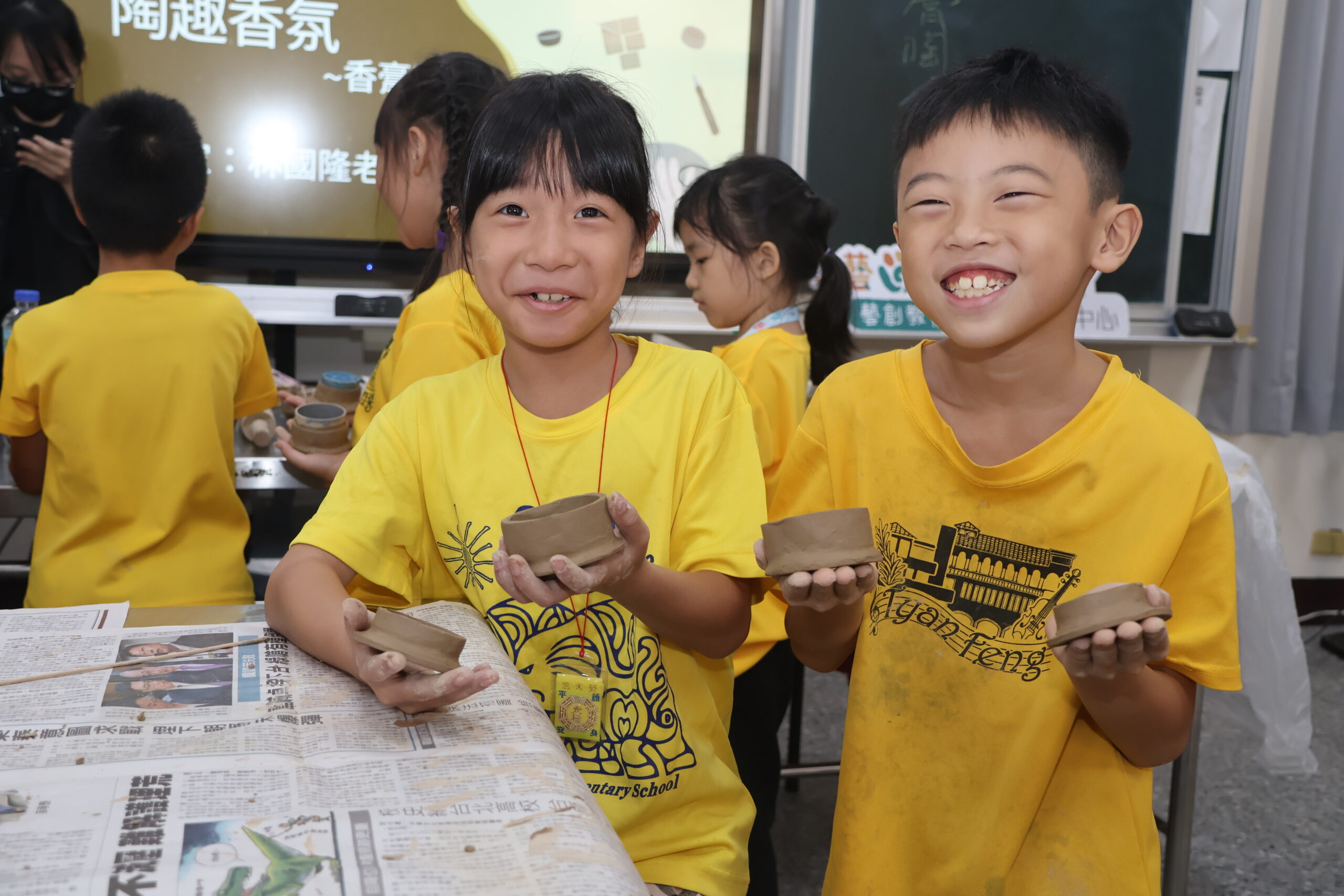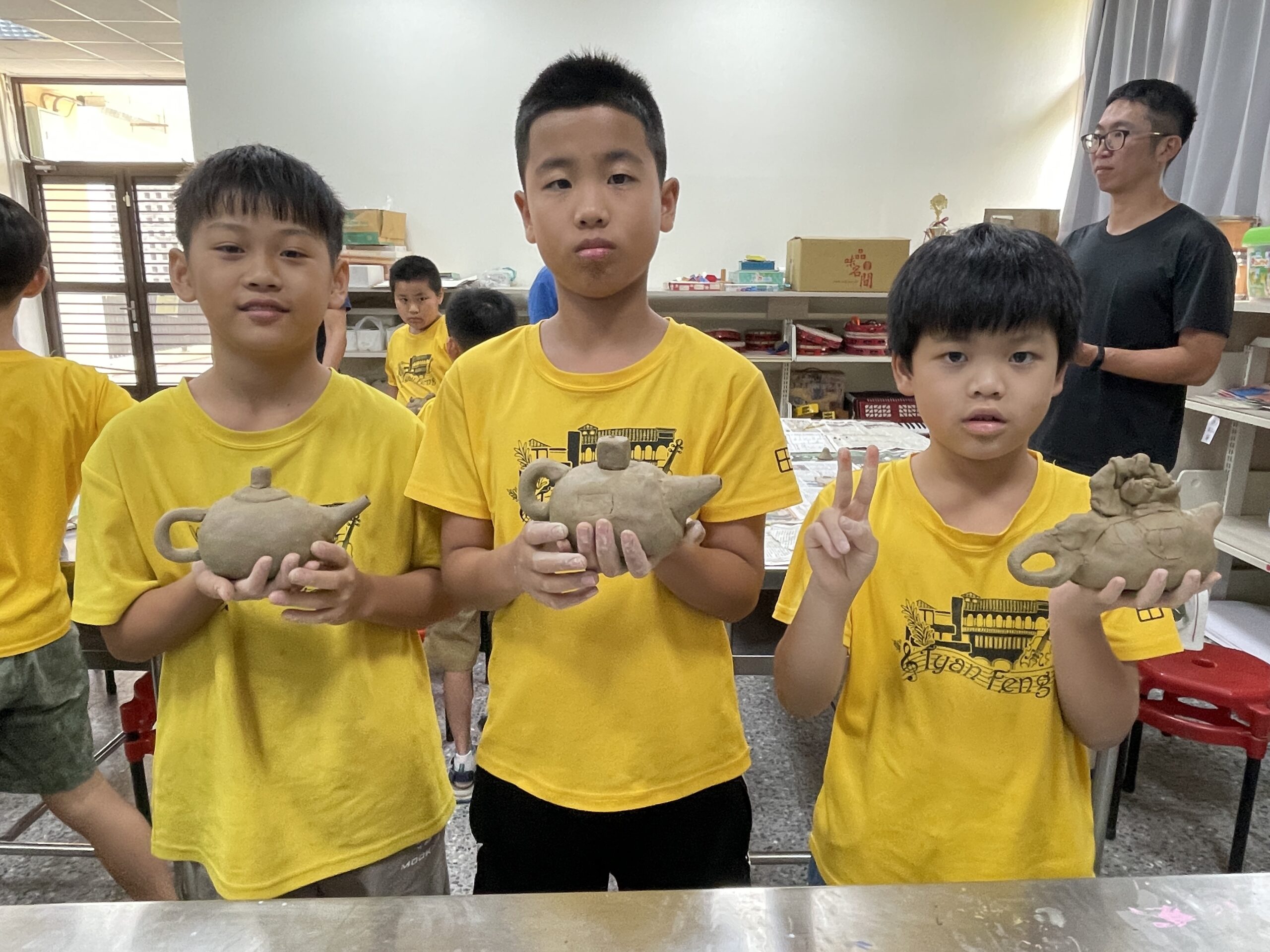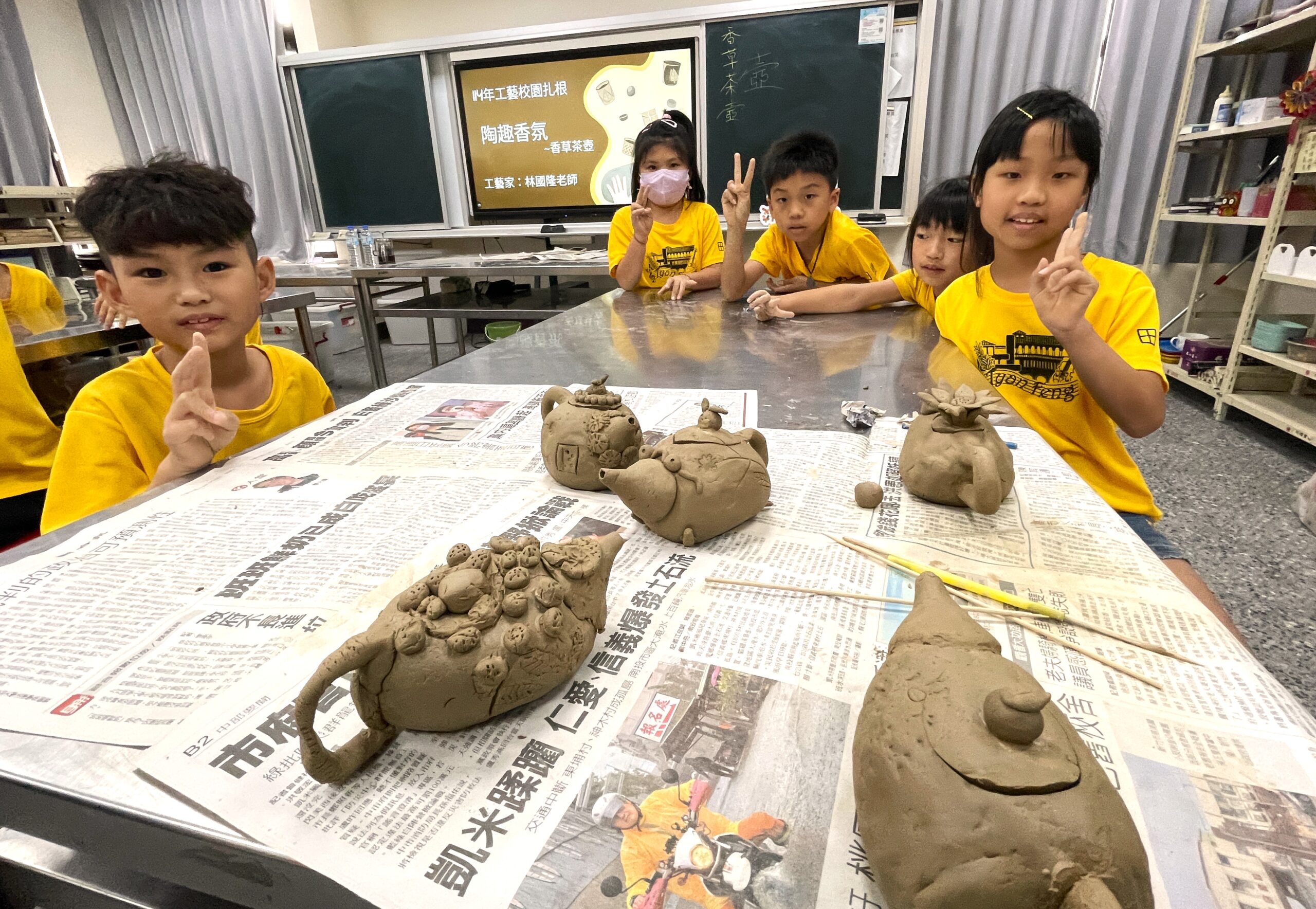 中高年級學生DIY出來的茶壺各異其趣,人人臉上顯現成就感與滿足。