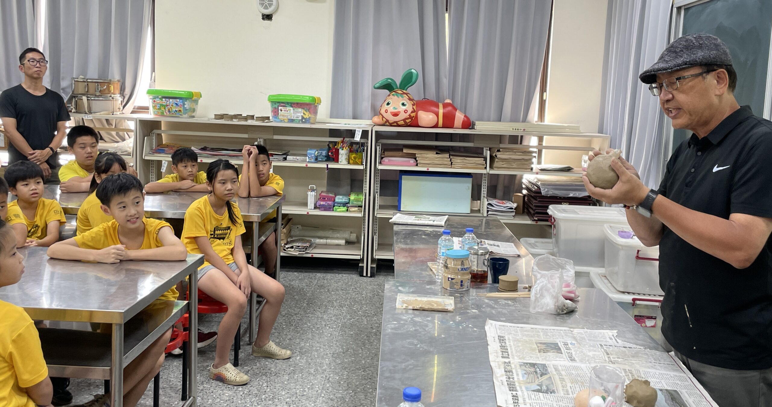 水里蛇窯陶藝師林國隆授課輕鬆傳授南投陶歷史  帶同學把一團土捏出陶盒與陶壼  教同學從動手作學習挑戰生活