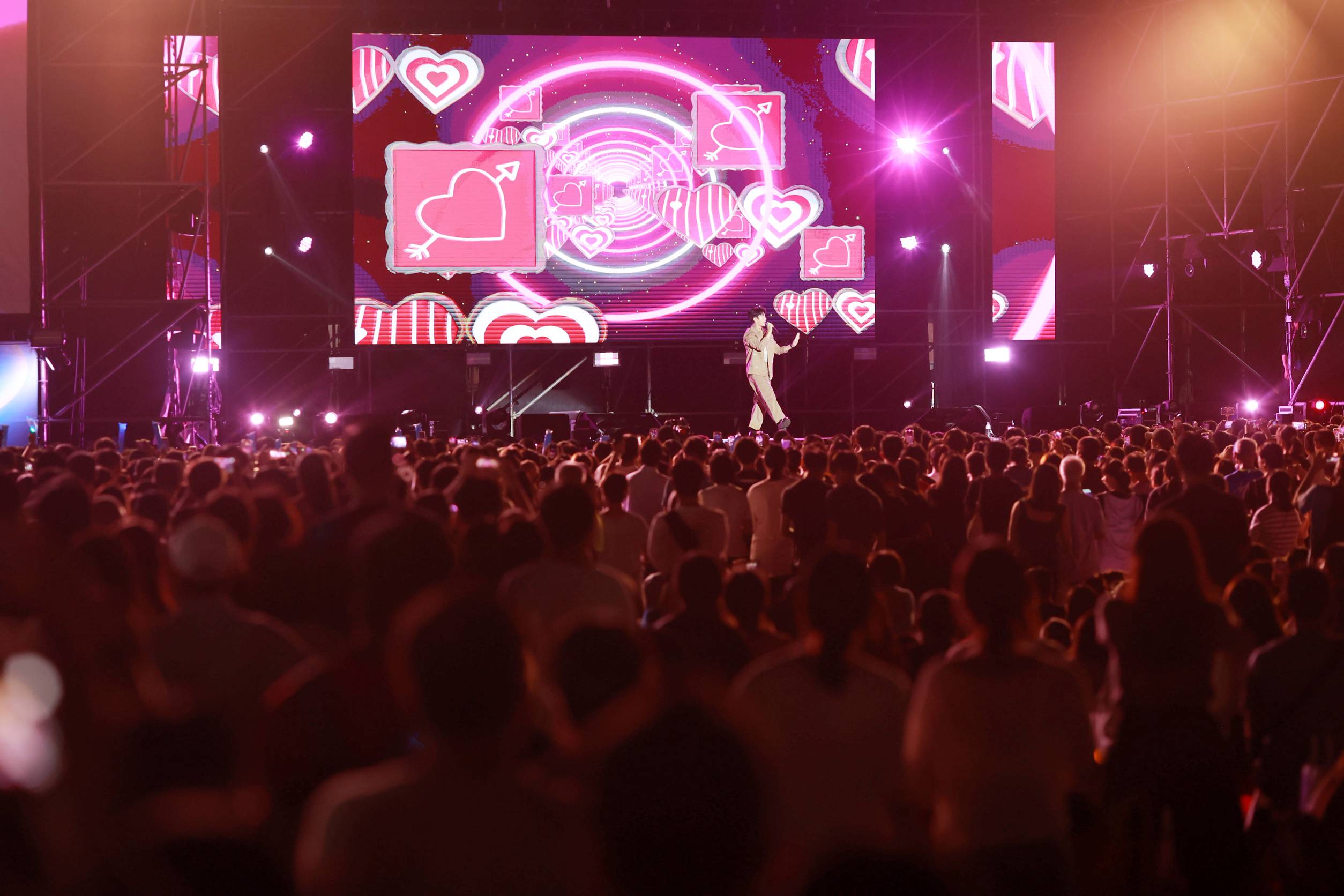 2025年南投世界茶業博覽會「一心二夜」演唱會,好歌唱不完,5日晚專為年輕人打造的「音浪之夜」金曲創作才子韋禮安演唱經典歌曲,觀眾情緒超HIGH。圖/南投縣政府提供
