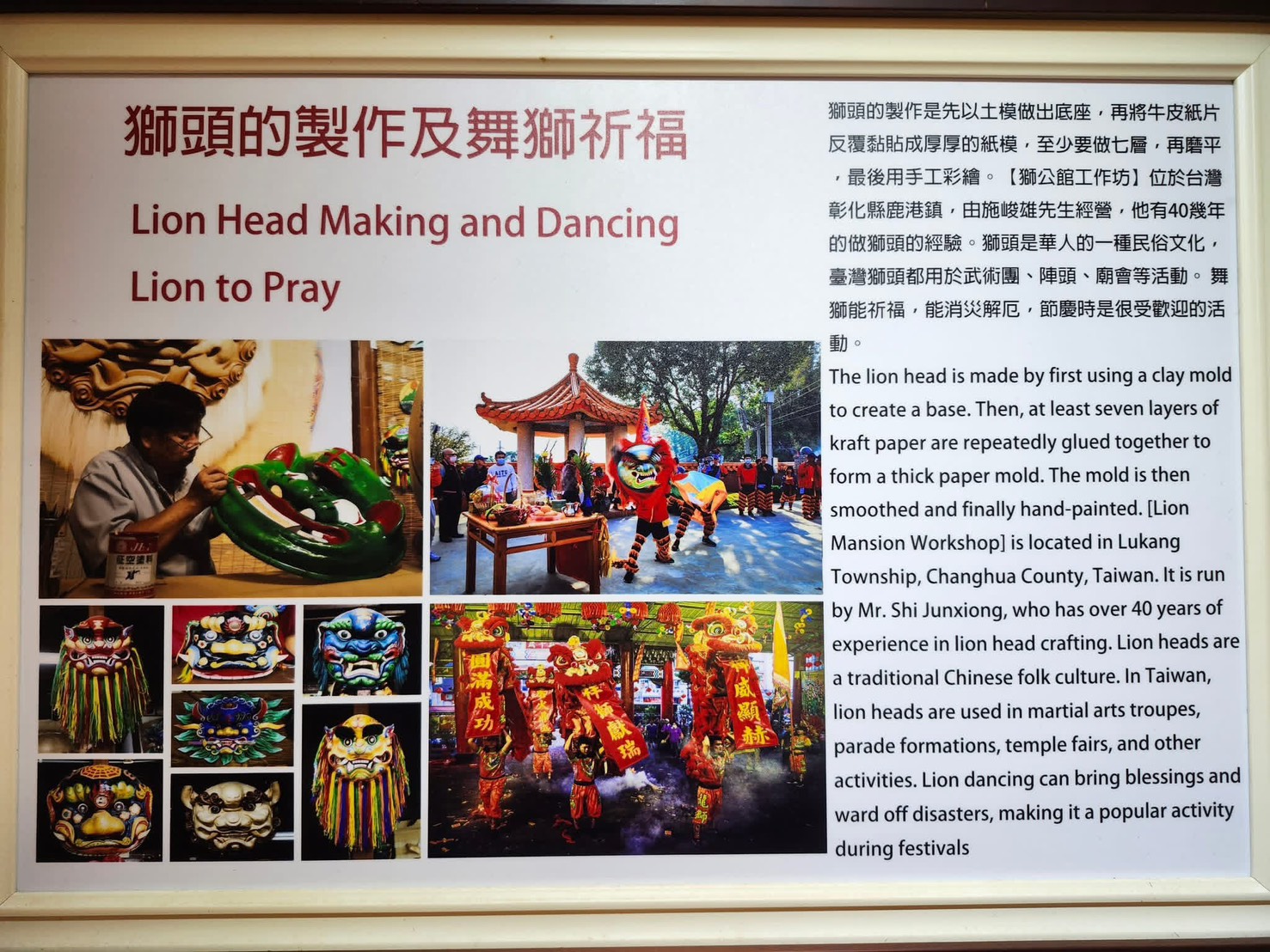 人文組合圖中英對照,手工做舞獅頭,舞獅祈福。圖/截取自賴明杭臉書