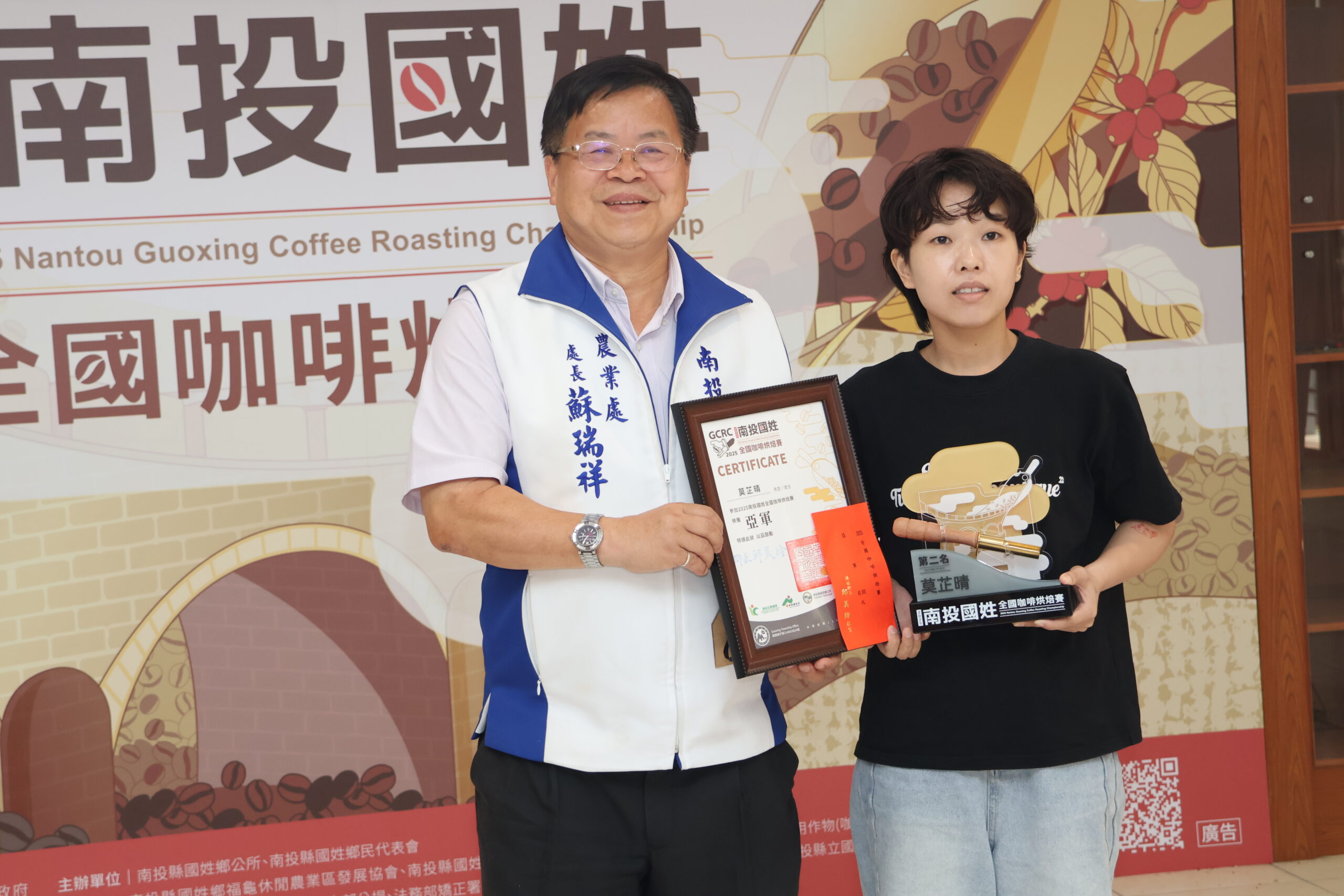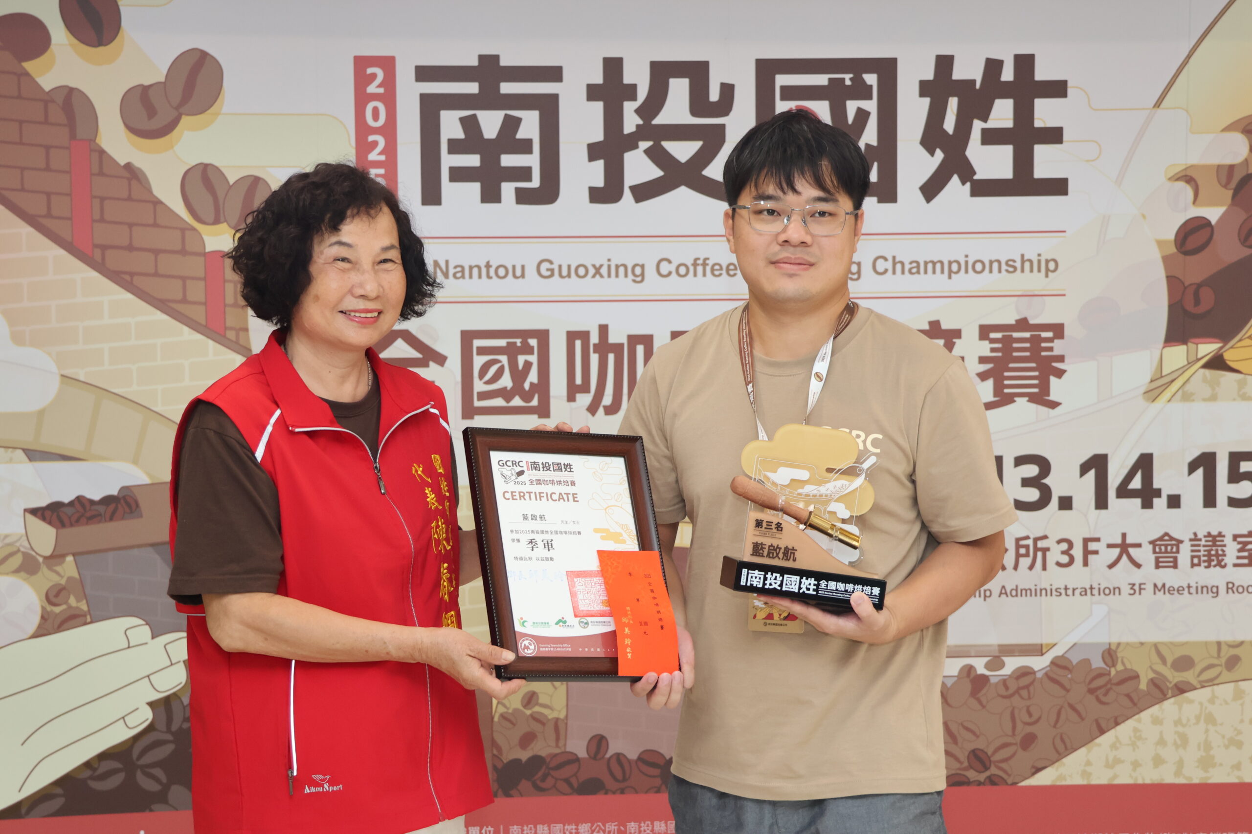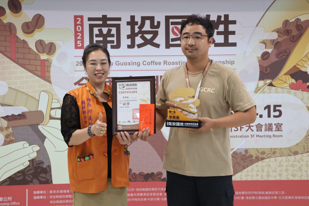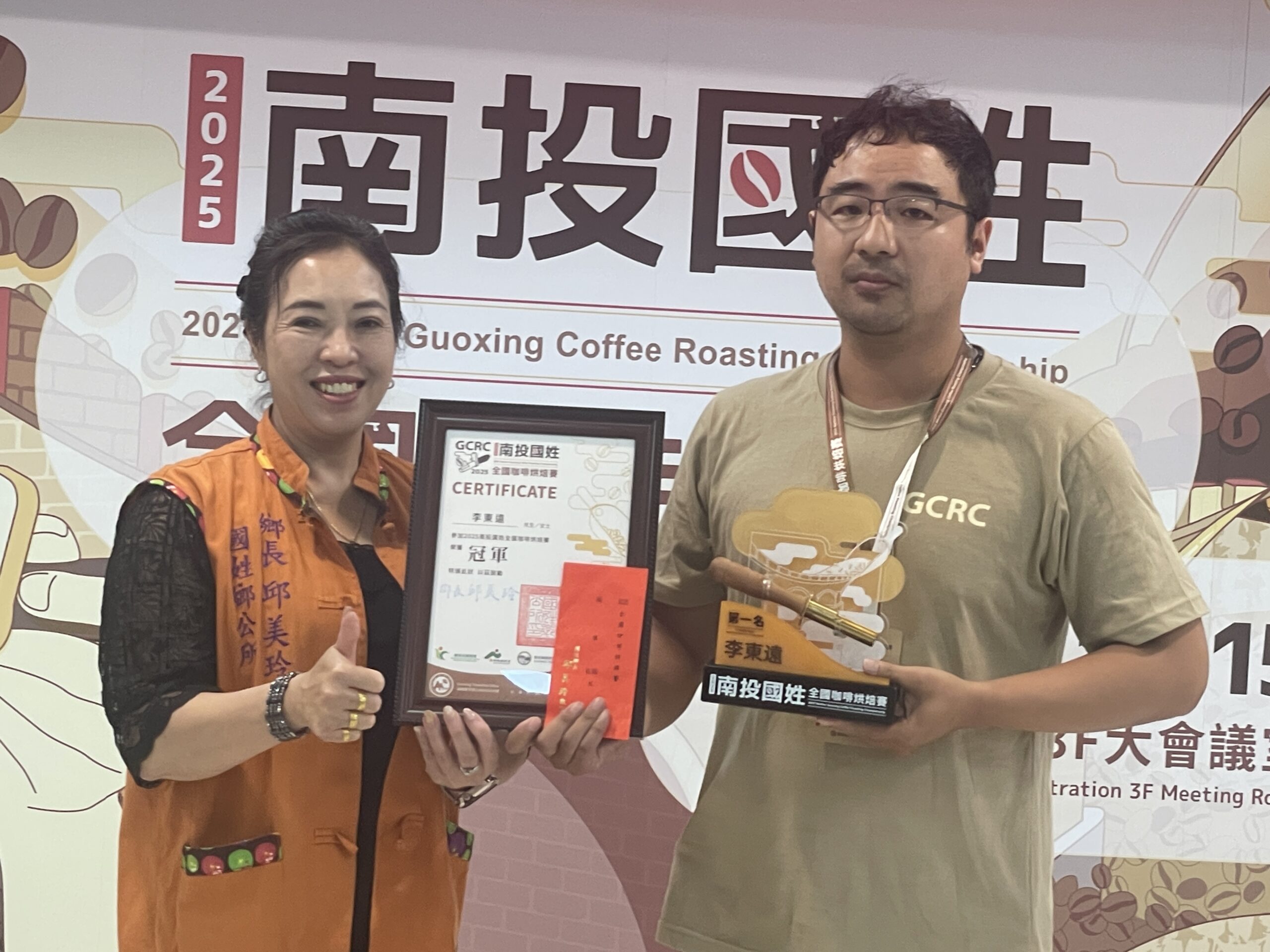 2025國姓鄉公所舉辦全國咖啡烘焙大賽成績揭曉,七年級生李東遠烘出層次明顯,調性強、果香濃郁咖啡,從多名前幾屆冠軍好手中脫穎而出,抱回冠軍並獨得六萬元獎金。