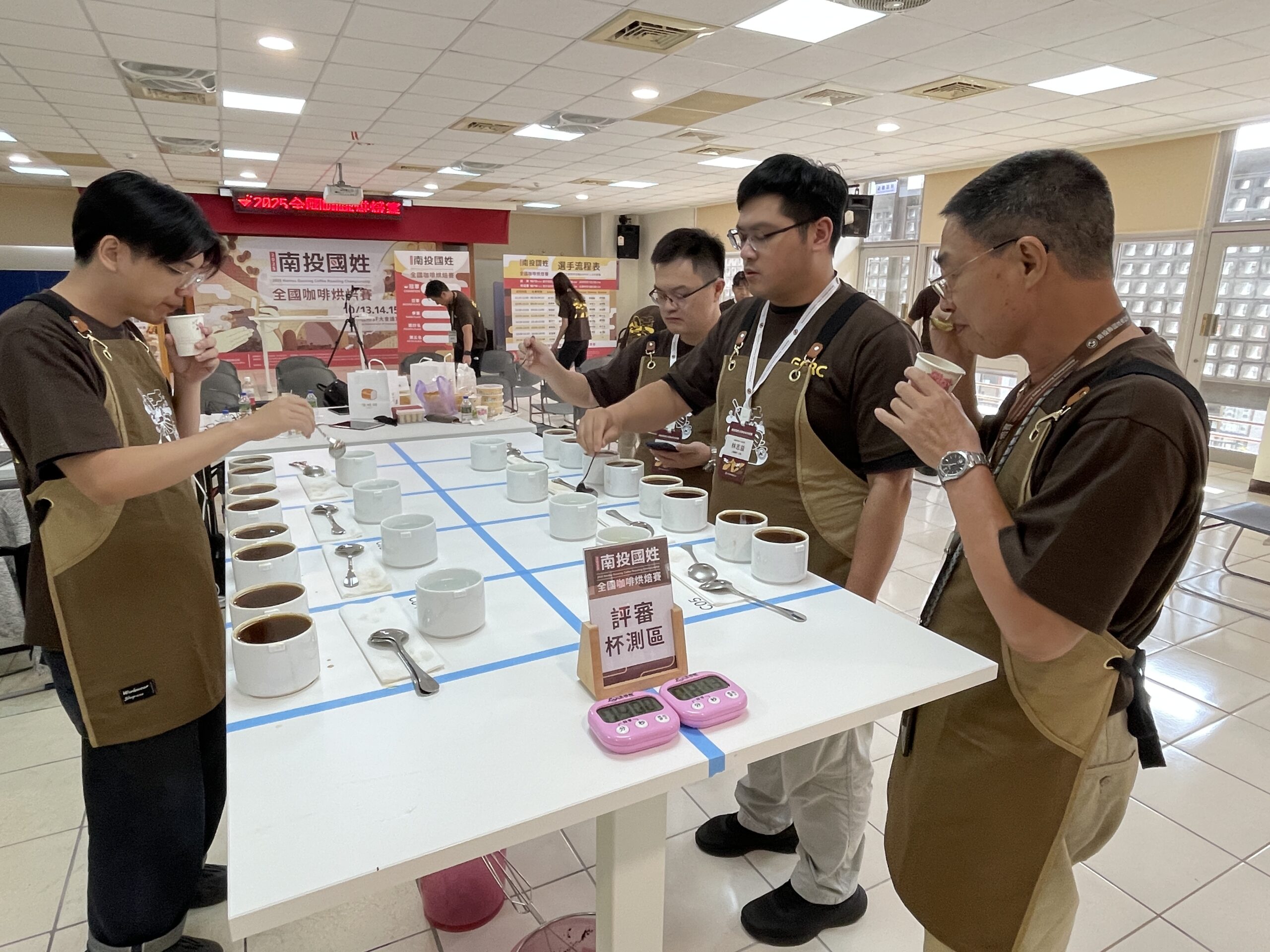 國姓鄉舉辦的第8屆全國咖啡烘焙賽,吸引來自全台各地46位咖啡烘焙高手同場競技,15日下午評鑑結果揭曉,冠軍得主爆出大黑馬,台中市大雅區青年李東遠抱走冠軍獎座並獨得六萬元獎金。