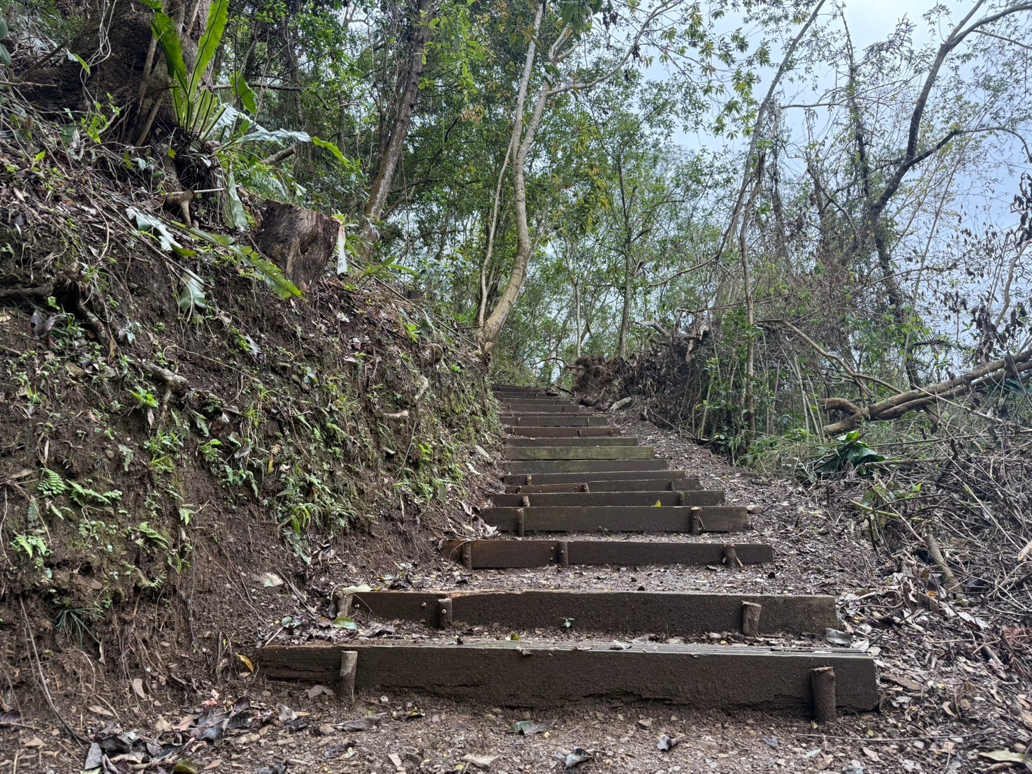 春陽村今年剛利用傳統工法修繕完成的「史努櫻步道」滿滿的原鄉風格,徜徉其間發思古幽情。圖/林保署南投分署提供