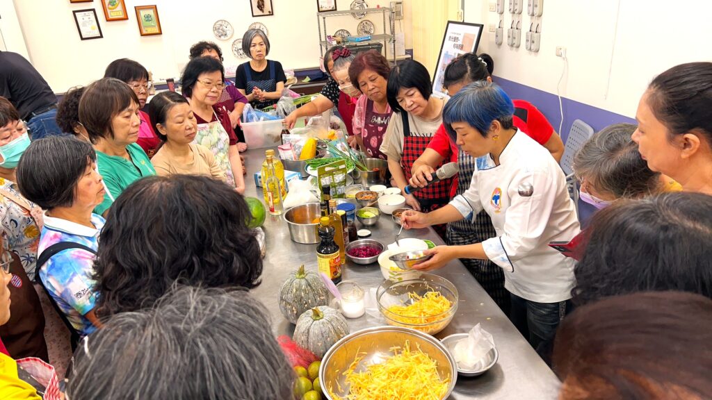 水里鄉農會推廣部邀請「寧波小館」鄧玲如主廚主持《食光慢旅・旬味廚房》家政課,女學員體驗「學做菜+認識在地農產」的美味行旅!圖/水里鄉農會提供