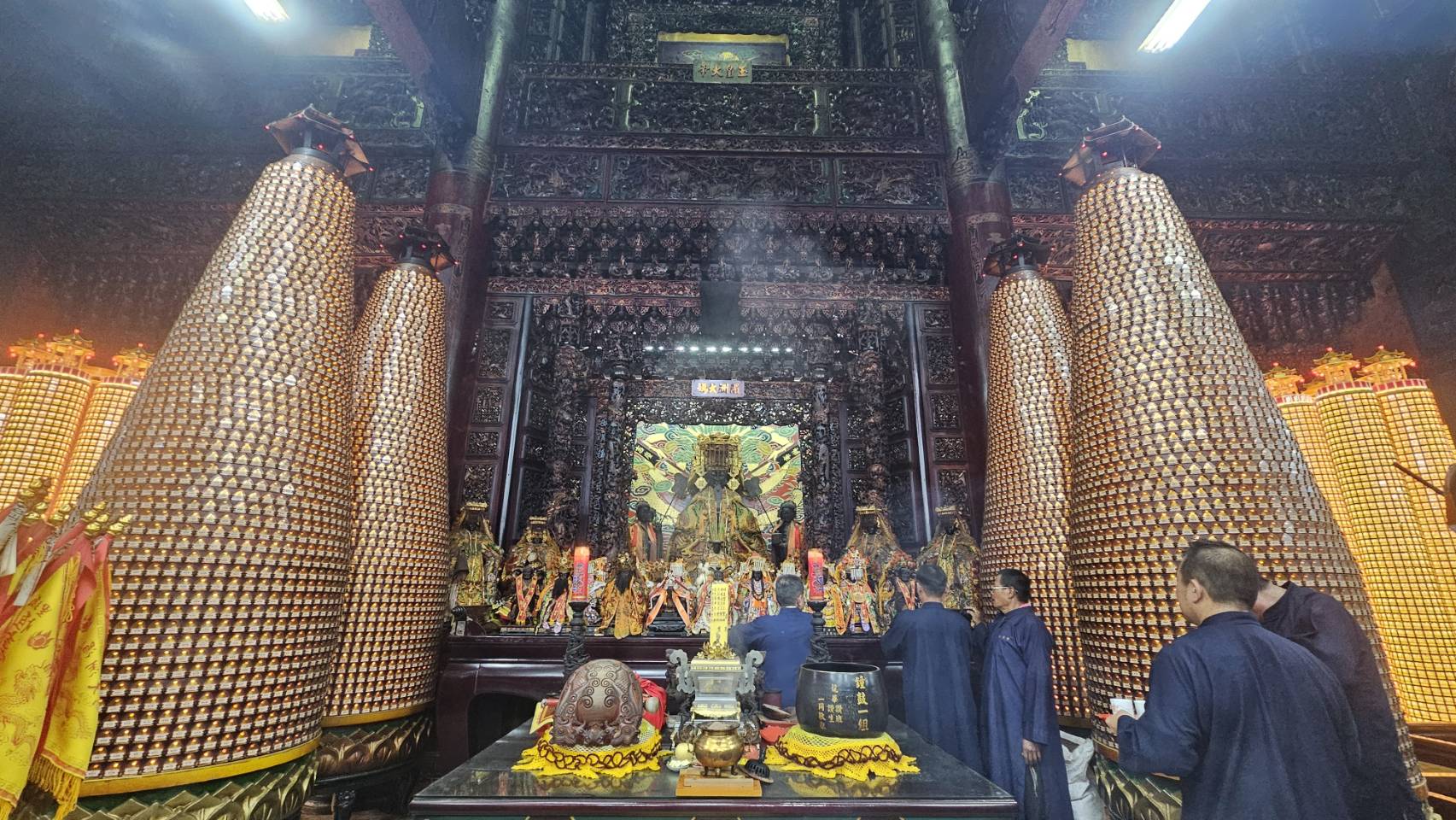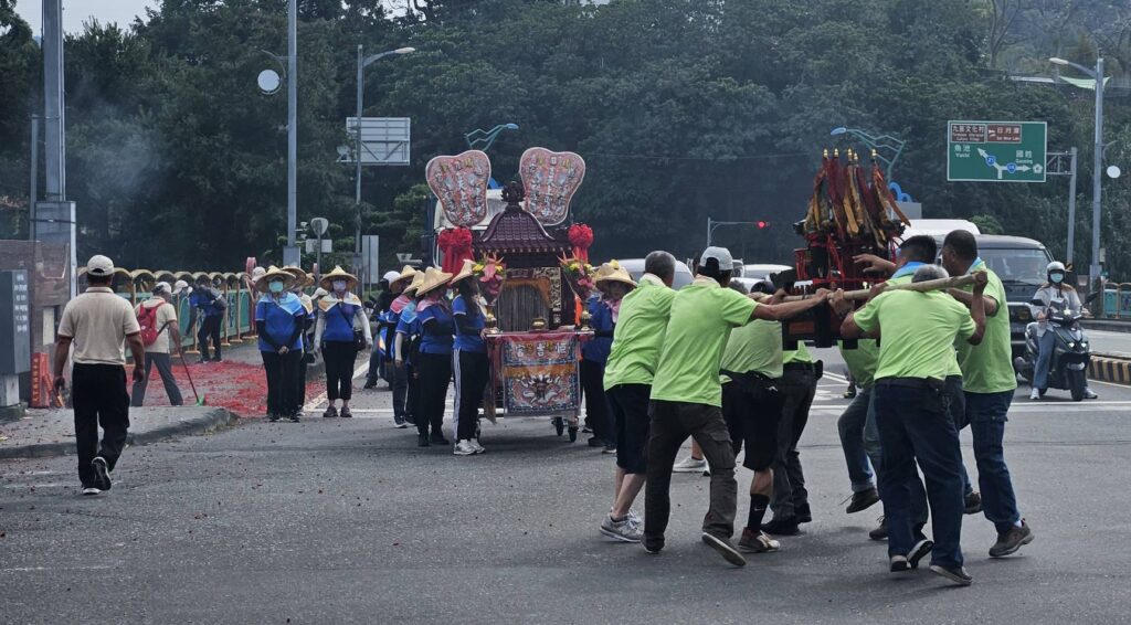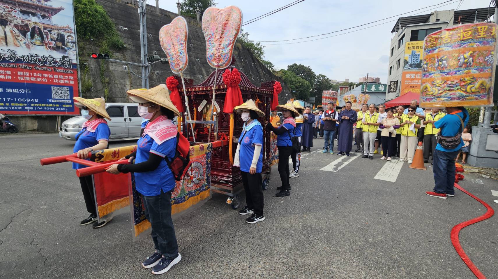 埔里恆吉宮執事人員10/20分赴彰化南瑤宮與鹿港天后宮以莊嚴隆重的儀式迎接媽祖等來小鎮作客,並在10/21日以巒轎帶著來作客媽祖一起繞境,為地方再添宗教盛事。圖/潘樵老師提供