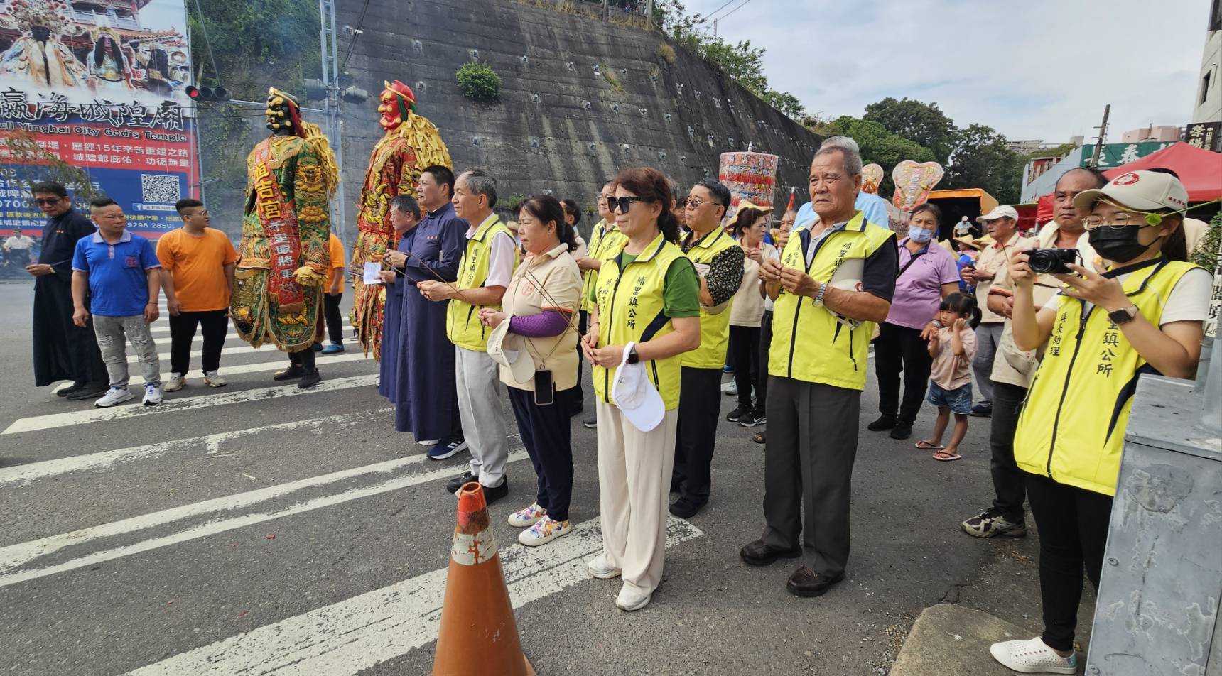 埔里恆吉宮執事人員10/20日赴彰化南瑤宮與鹿港天后宮以莊嚴隆重的儀式迎接媽祖等來小鎮作客,並在21日以巒轎帶著來作客媽祖一起繞境,揭開小鎮九月瘋媽祖序幕,鎮長廖志城與廟方執事人員都在愛蘭橋頭迎接聖駕。圖/潘樵老師提供