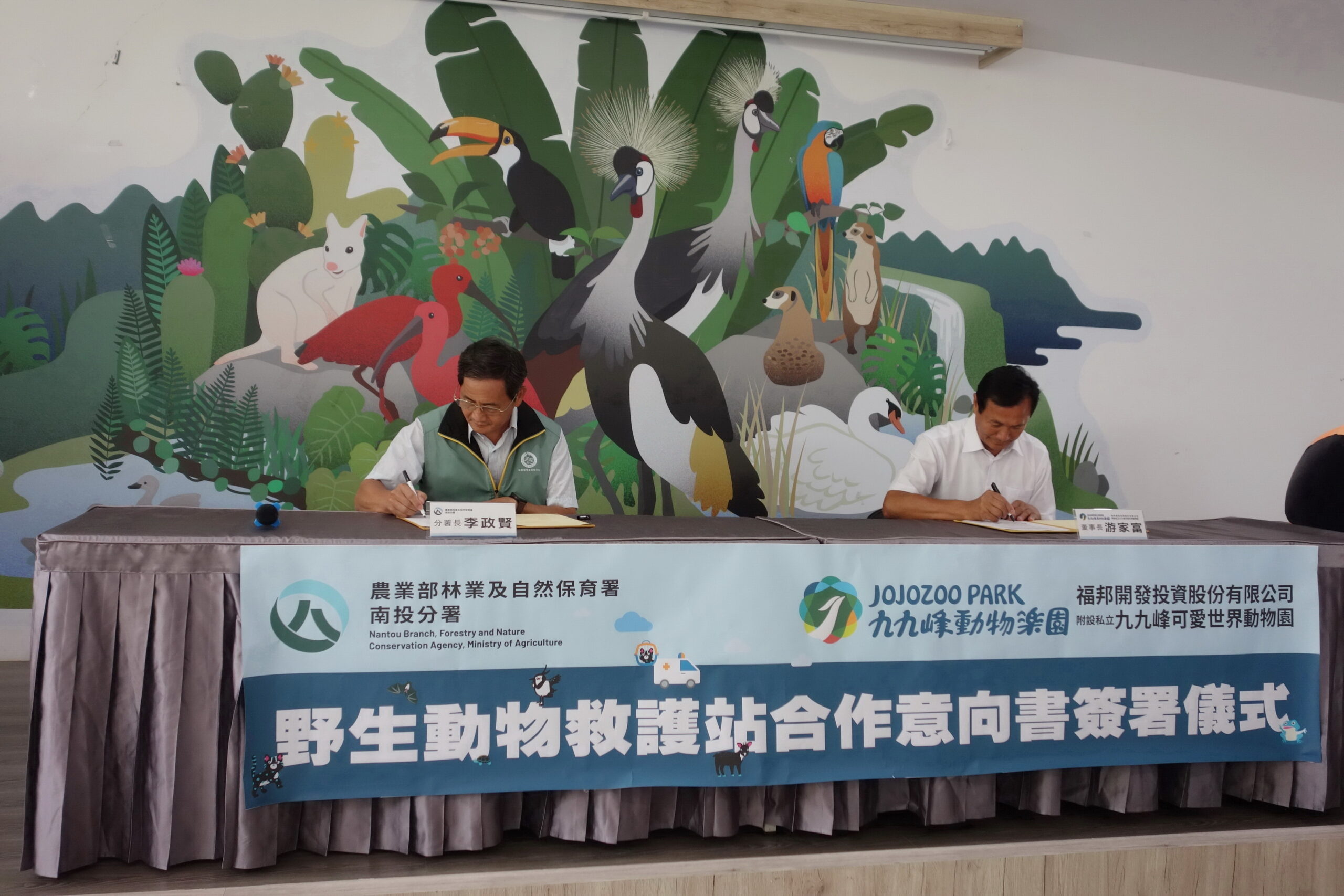 隨著保育觀念第的深化,農業部林業及自然保育署為提升野生動物的救援效率與保育量能,於光復節前夕與福邦開發投資公司附設私立九九峰可愛世界動物園董事長游家富正式簽署野生動物救護站合作意向書,共同推動完善之野生動物救護站,為分署轄區野生動物受傷或生病提供緊急救護、醫療照護,為生態保育注入更多資源。