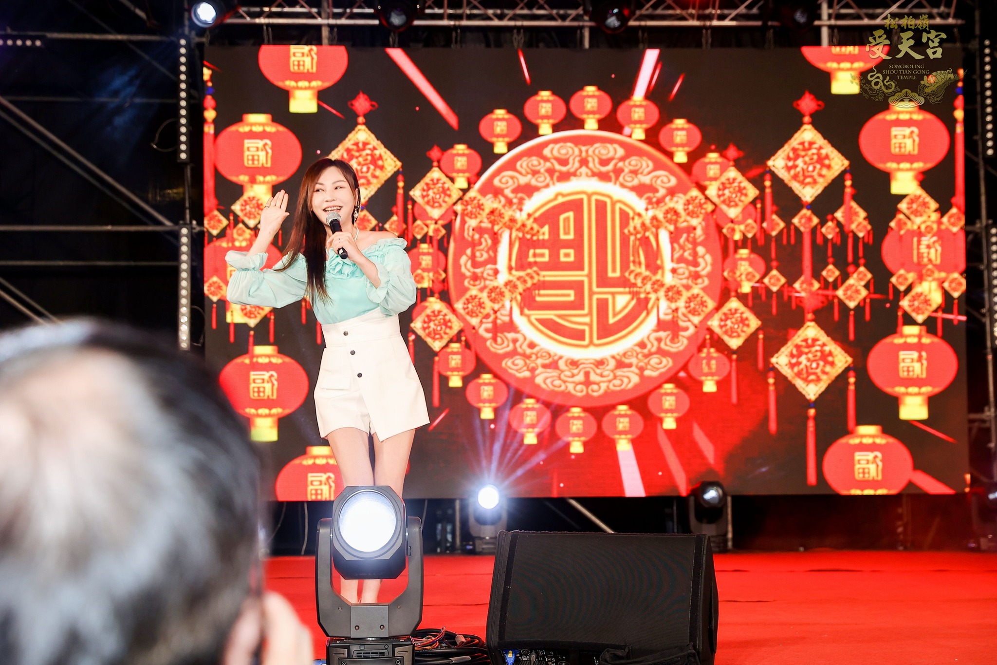 紅人榜歌星—林琇琪精彩演唱會帶動現場氣氛。圖/截自松柏嶺受天宮臉書粉專