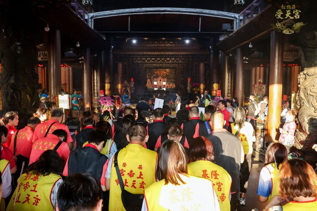 「南投縣宗教文化系列活動—114年北極玄天上帝飛昇得道全國聯合慶典」26日在名間鄉松柏嶺受天宮舉行聯合祈福科儀。縣長許淑華、受天宮主委陳登岳、立委游顥等人與信眾一起祈求風調雨順、國泰民安。圖/南投縣政府提供