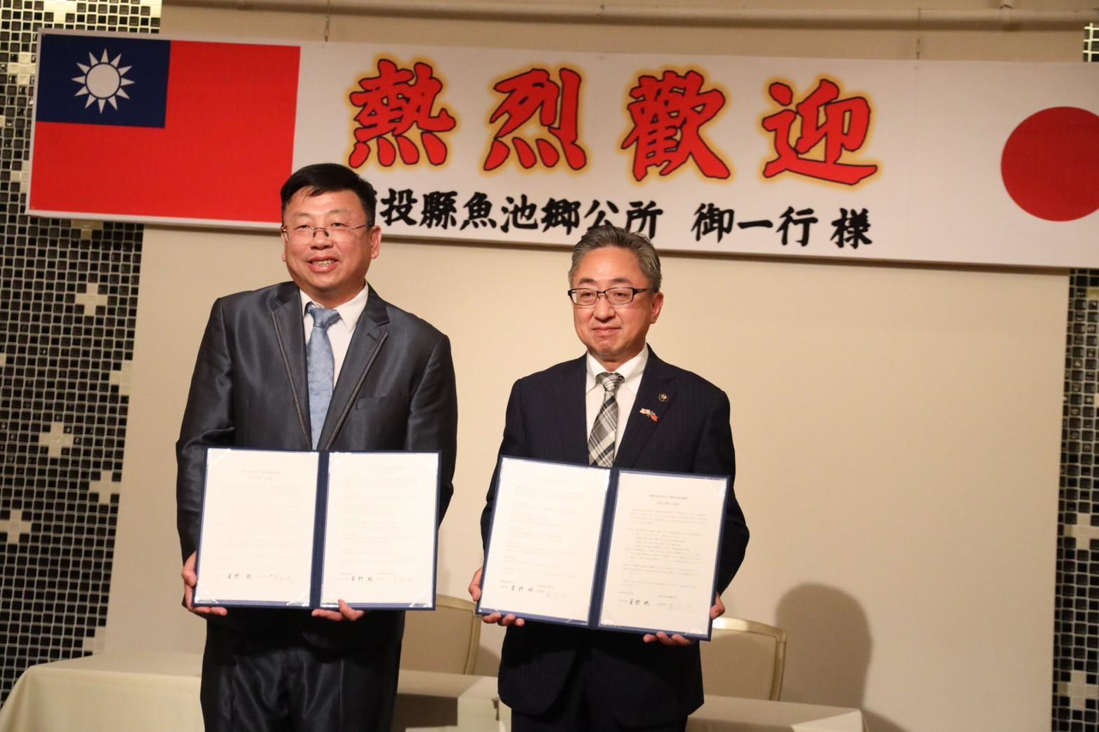 今年剛好是百年前日本人新井耕吉郎引進阿薩姆紅茶來魚池鄉栽植開啟台灣紅茶風華屆滿百年,「2025日月潭紅茶文化季」,將於11月1日至2日於日月潭向山遊客中心登場,魚池鄉長將與新井先生的故鄉日本群馬縣沼田市長簽訂姊妹市,並邀新井家屬來台見證紅茶文化發展,這是雙方在日本簽署交流備忘錄。圖/魚池鄉公所提供