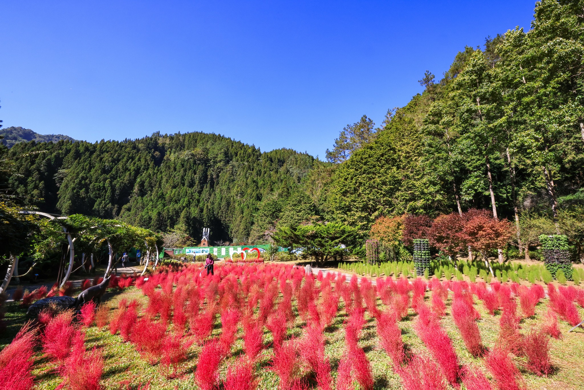 時序入秋,加上東北季風報到,杉林溪森林生態渡假園區日夜溫差大與低溫加持下,園區楓紅達3成,波波草由紅轉鮮紅,園區上演美翻天的變妝秀。圖/杉林溪提供