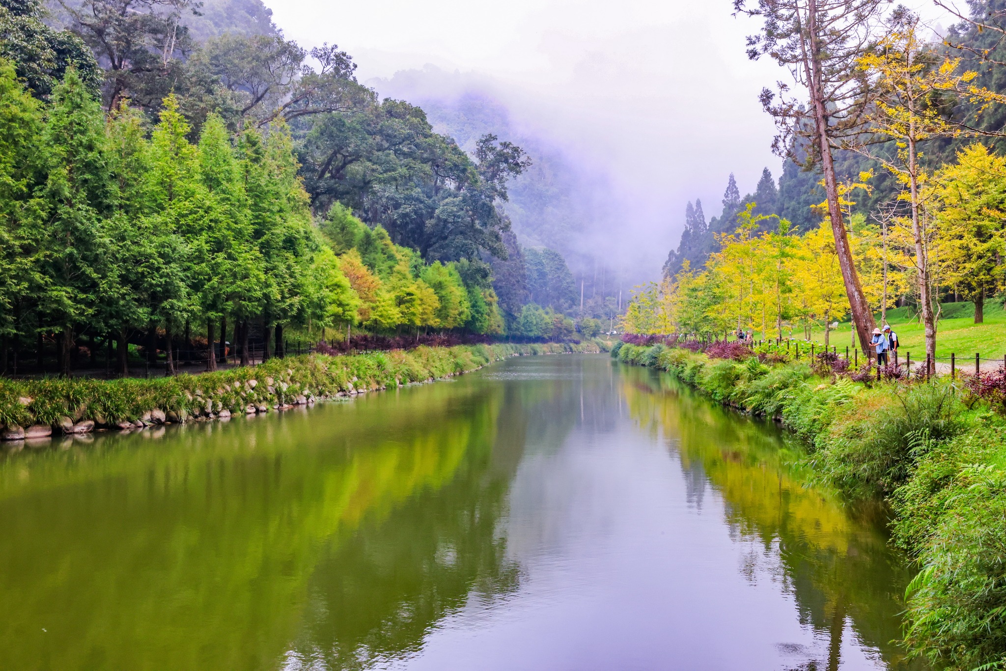 中海拔杉林溪 栽種3000棵青楓 千棵紫葉槭 800棵楓香 銀杏 水杉 波波草 在東北季風吹拂中綠葉黃翻紅 大地上演變妝秀