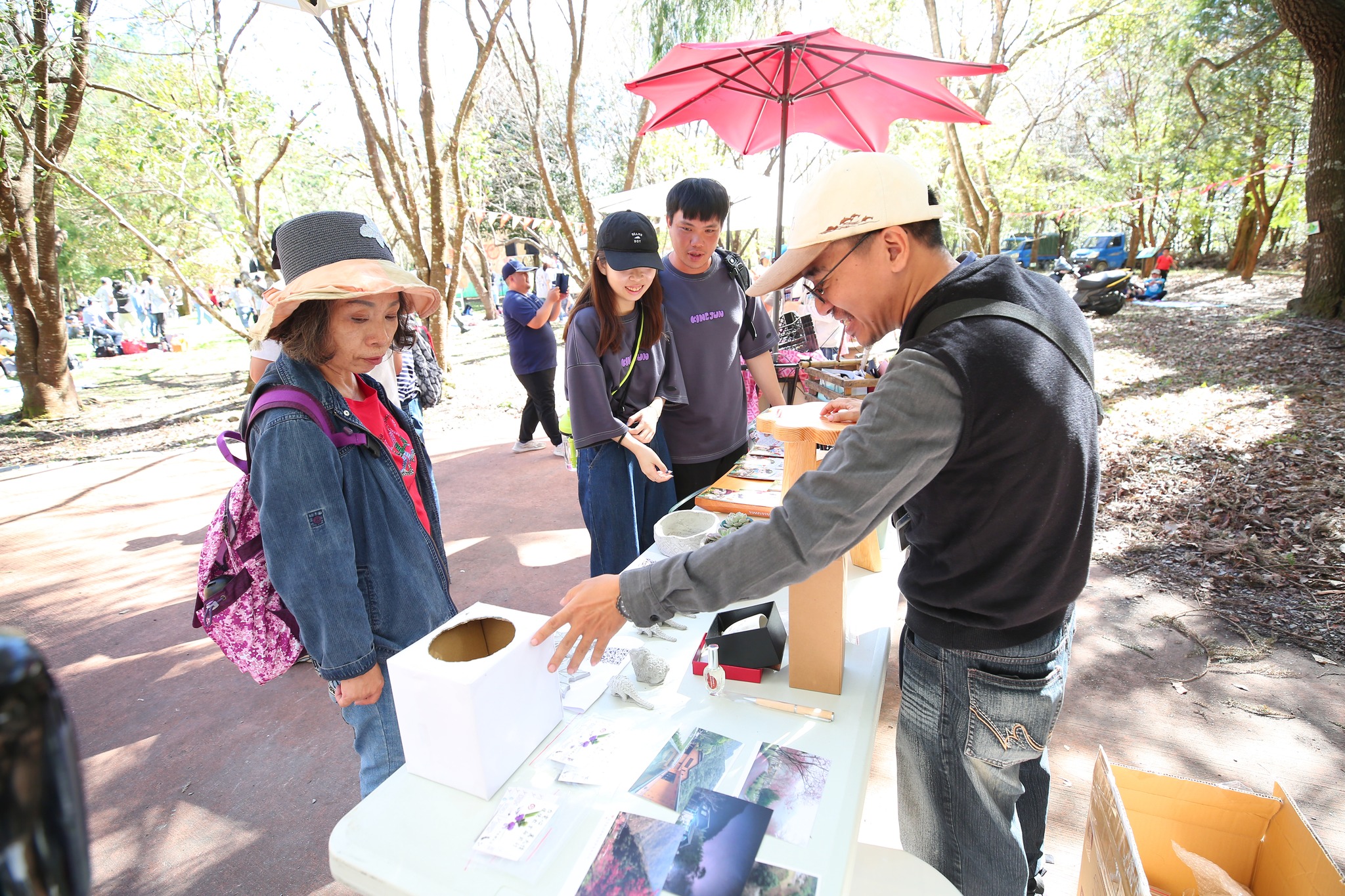 活動期間只要在現場市集攤位消費並完成任務,即可參加「集章闖關活動」,集滿貼紙即可兌換限量國產材鑰匙圈。圖/林保署南投分署提供