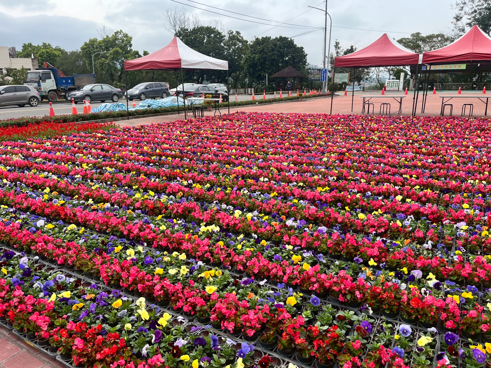 竹山鎮公所六年前就開始配合中央及南投縣政府政策,將廚餘變種花有機肥培育出大量草花現場。圖/竹山鎮公所提供