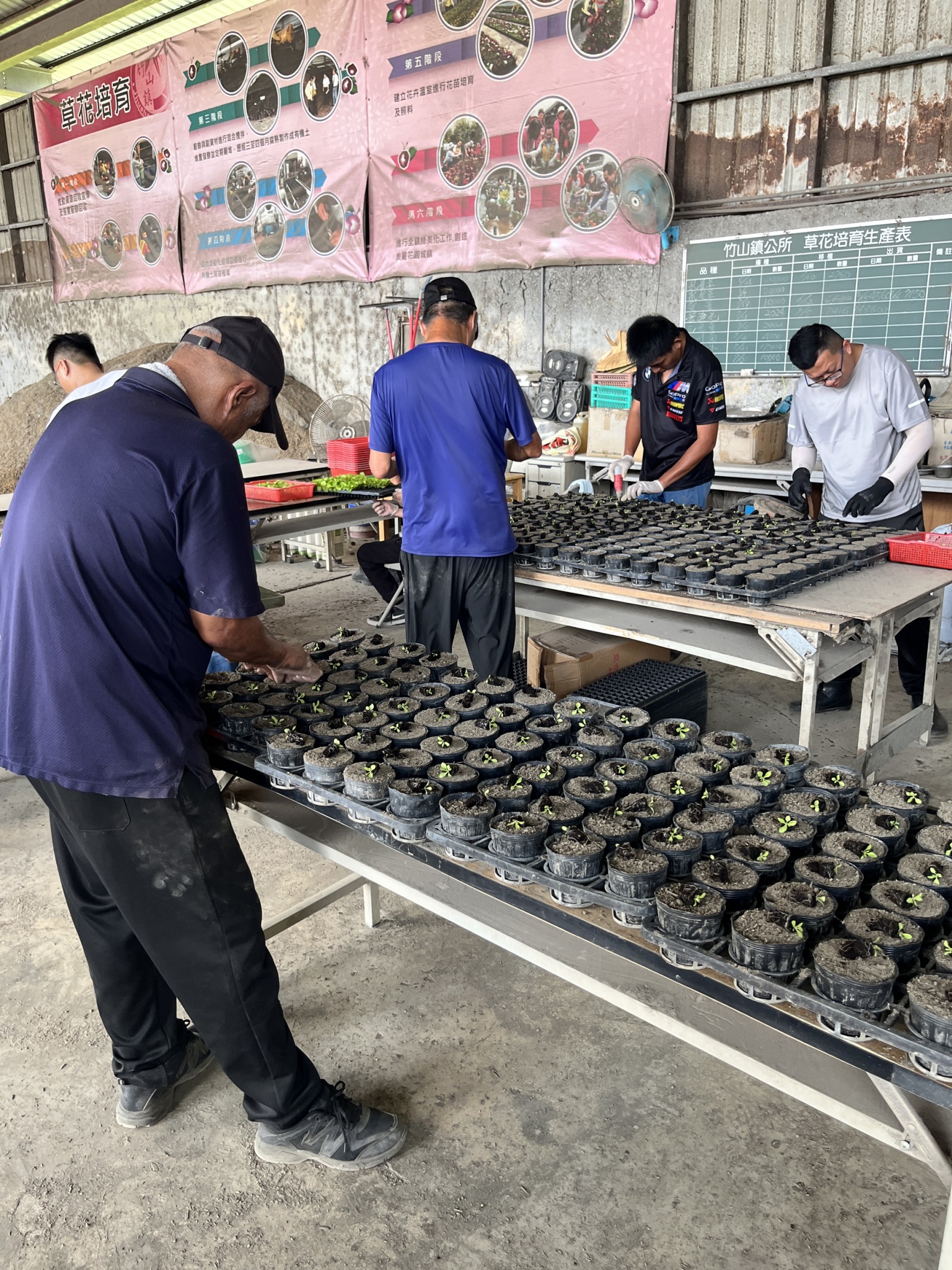 竹山鎮公所六年前就開始配合中央及南投縣政府政策,將廚餘變種花有機肥培育草花現場,育成草花送鎮民美化庭園還種在公共空間美化環境。圖/竹山鎮公所提供