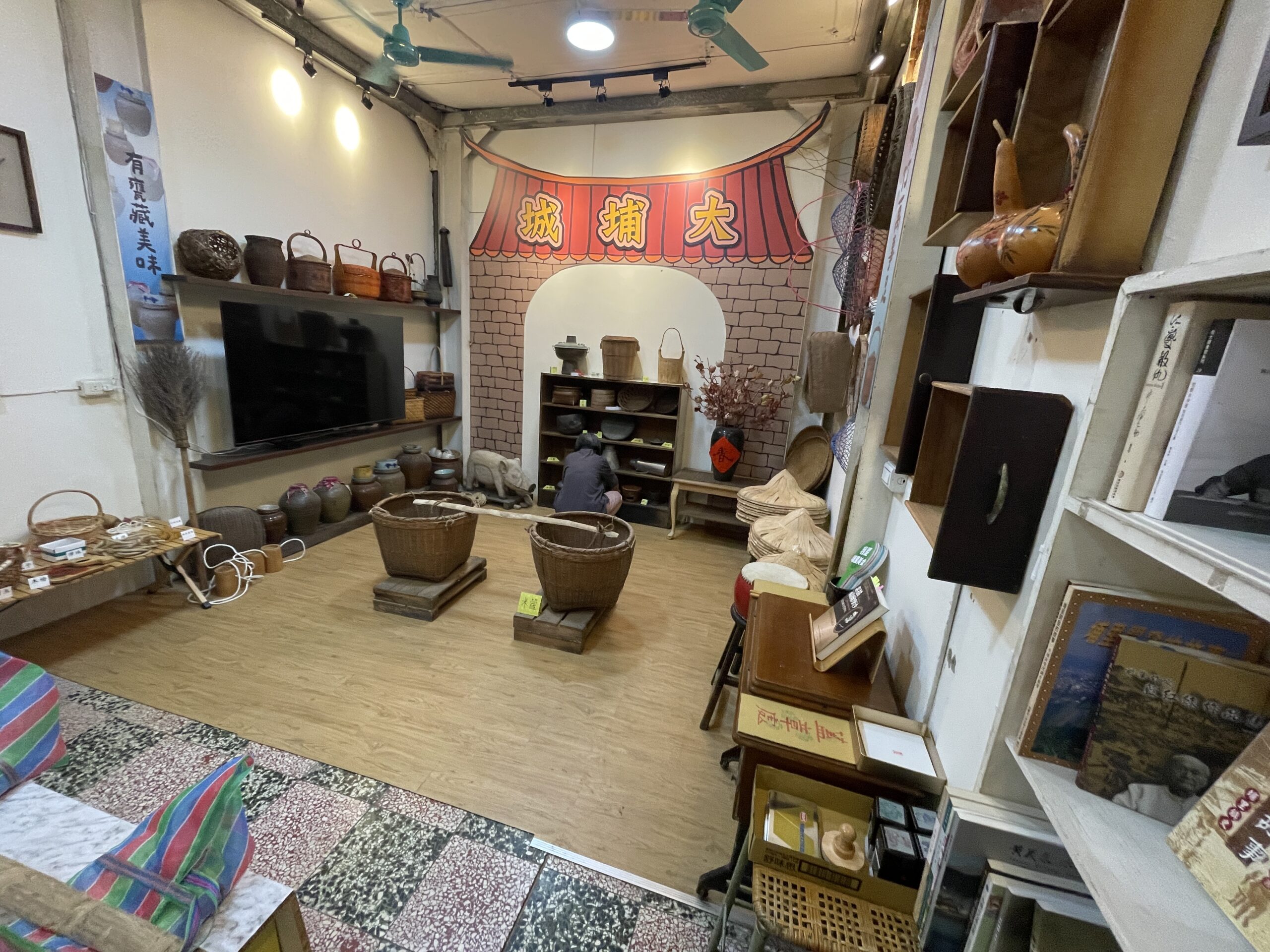 踏進東益成穿越特色伴手禮商品區,先經越黑膠唱片牆再拉開時光隧道之門進入大埔城展區又是另一種古早生活智慧收藏品。