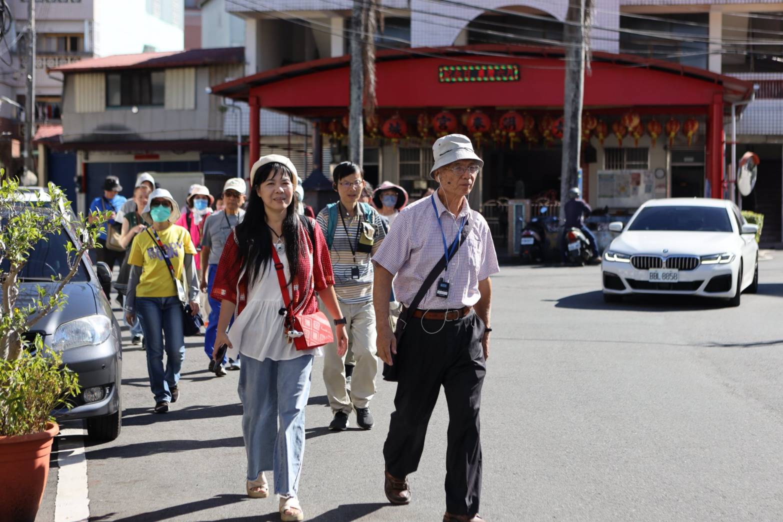 今(18日)晚的「夜訪大埔城」則由潘樵老師帶領,學員從恒吉宮媽祖廟出發,途經孔廟、草鞋巷、四個城門等據點,感受老街在夜色中散發的懷舊氣息,透過潘老師生動風趣的導覽解說,引領學員如同走入時光隧道回到百年前的場景,學員不斷發出驚呼。