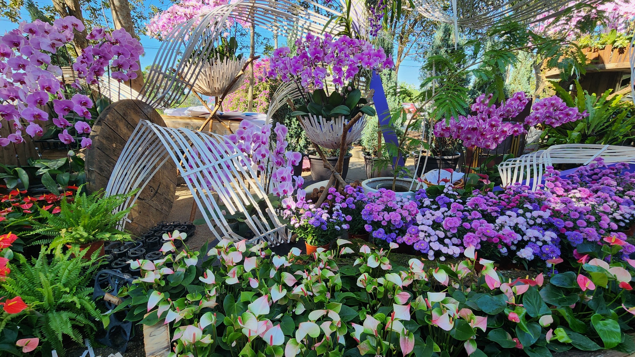 2025埔里花卉展暨南投花卉嘉年華,結合花藝老師創作與志工巧手,呈現出層層疊疊、色彩斑斕的花卉地景,展現花卉產業與自然景觀的融合美學,並安排精彩表演。圖/埔里鎮公所提供