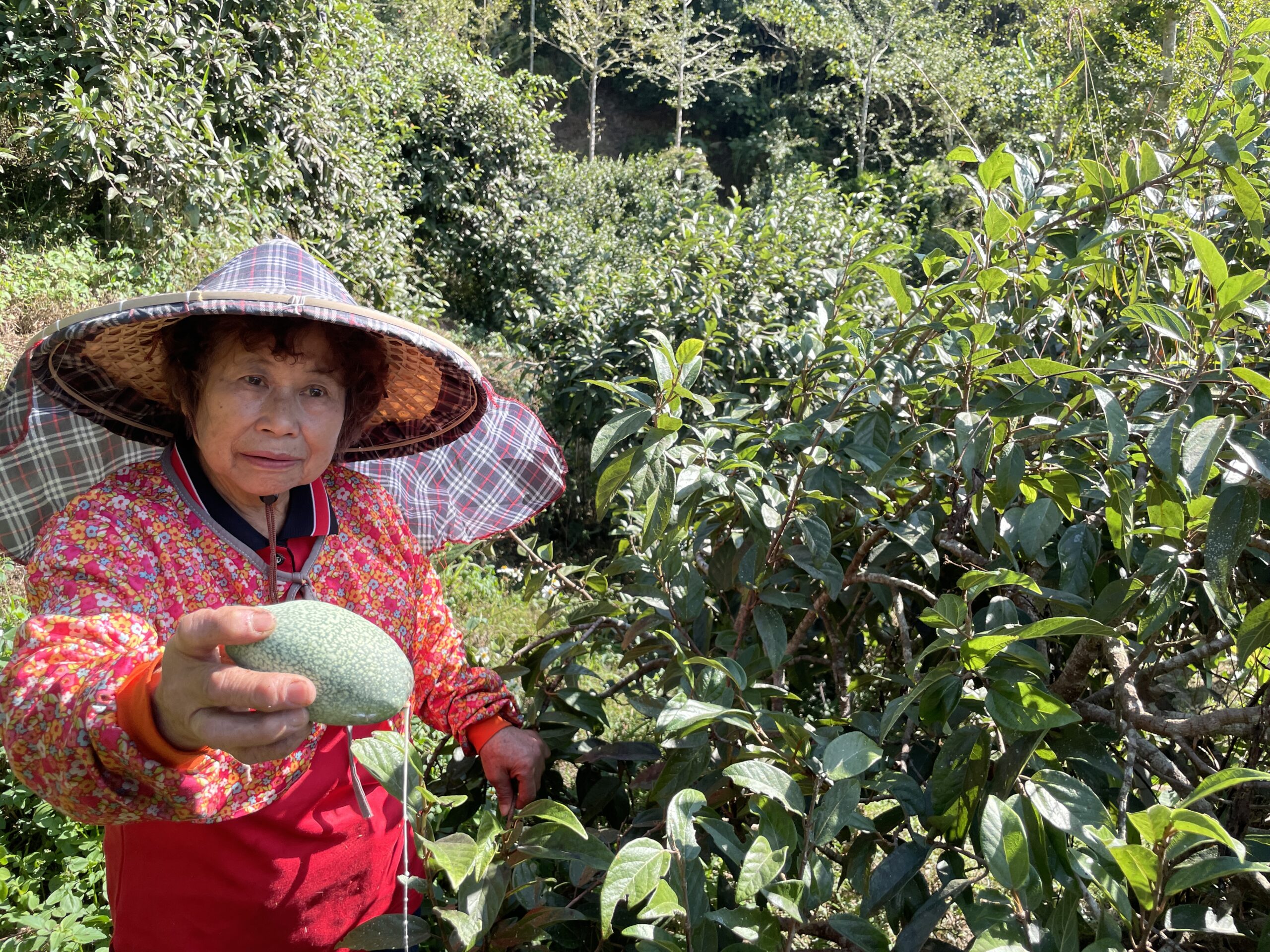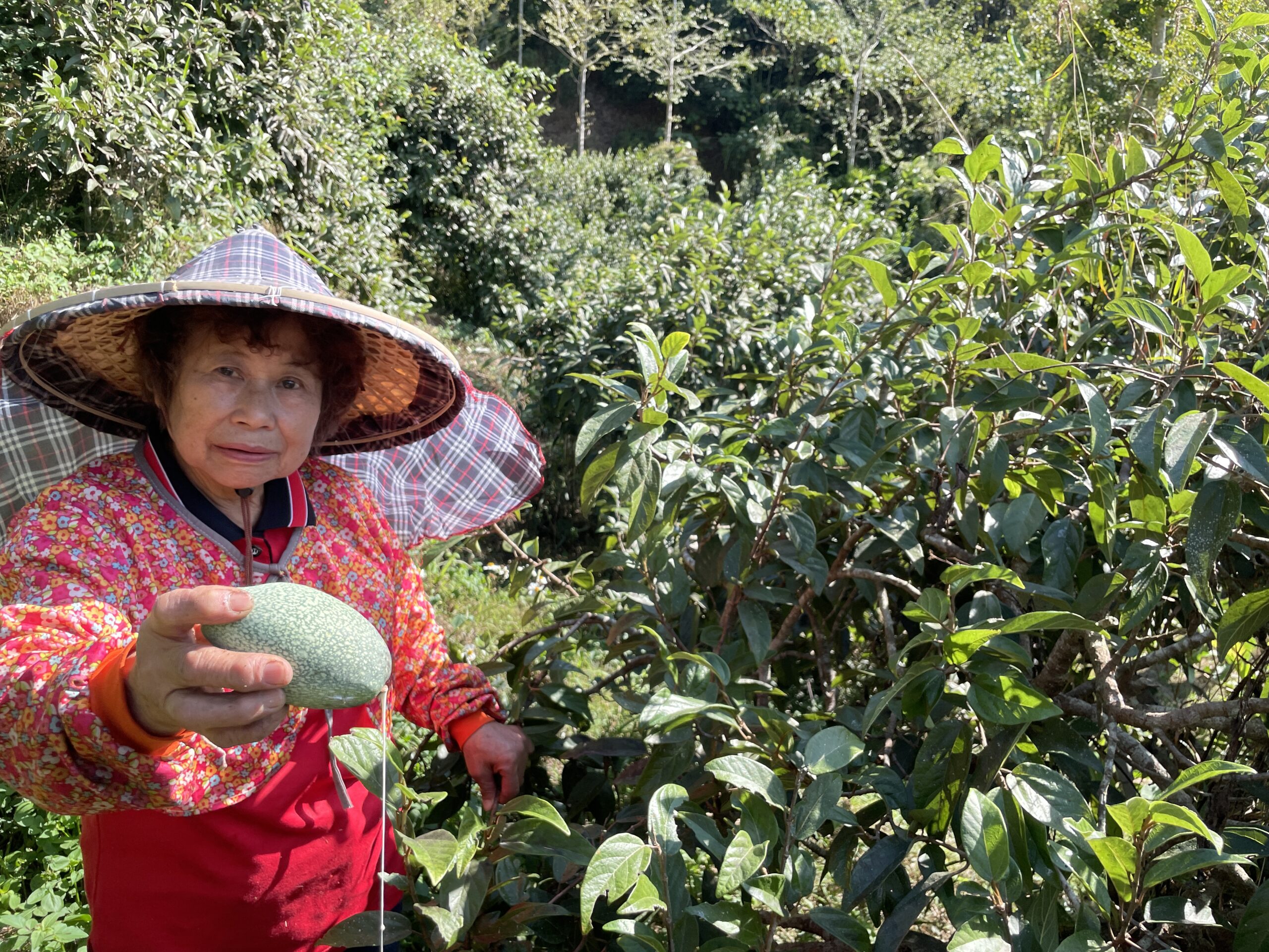 蔡潘阿嬤的愛玉果園採無毒有機管理,蟲吃剩的就是她家的。