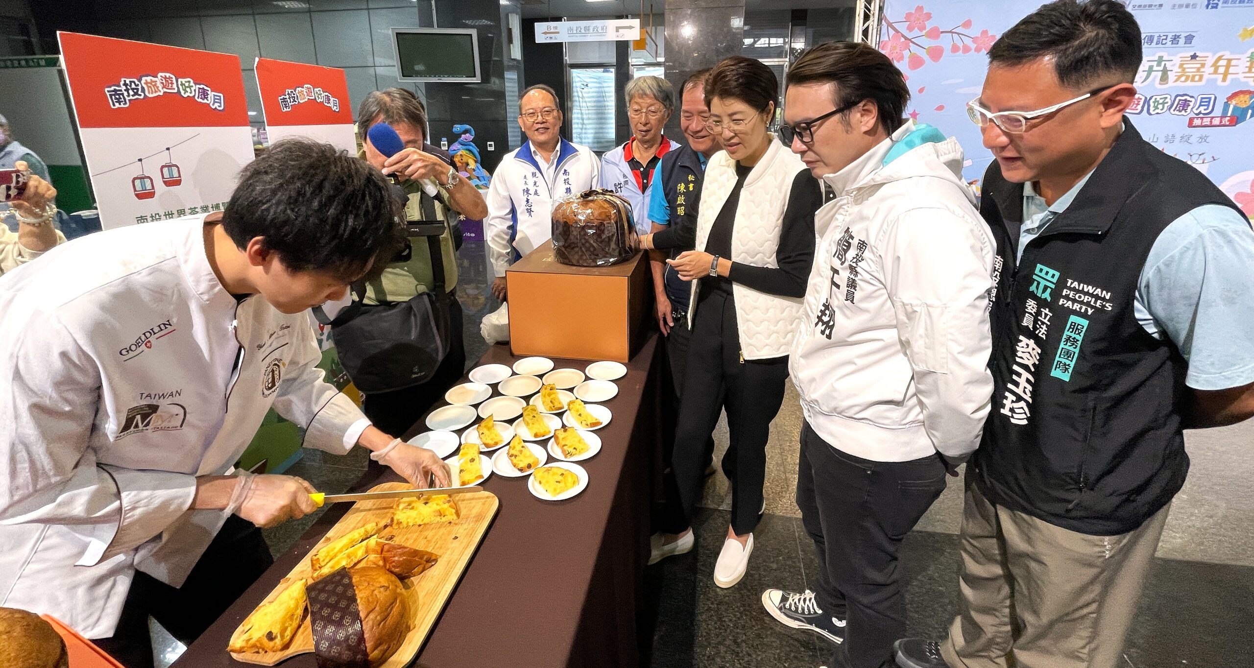 Feeling18創辦人茆晉(日牂)在活動中,帶來台灣高鐵商務艙指定點心—可可椪柑蛋糕及台灣隊上個月在世界盃聖誕麵包大賽奪得總冠軍的水果麵包潘那朵尼,象徵以南投土地孕育的素材站上世界舞台,提升南投國際能見度。拿下冠軍的八年一班麵包師父蔡約群現場邀許縣長、茆董等一起切總冠軍麵包與來賓分享。許縣長肯定Feeling18長期投入地方,以高品質烘焙結合在地花果香氣,讓花卉嘉年華增添更多精緻亮點。
