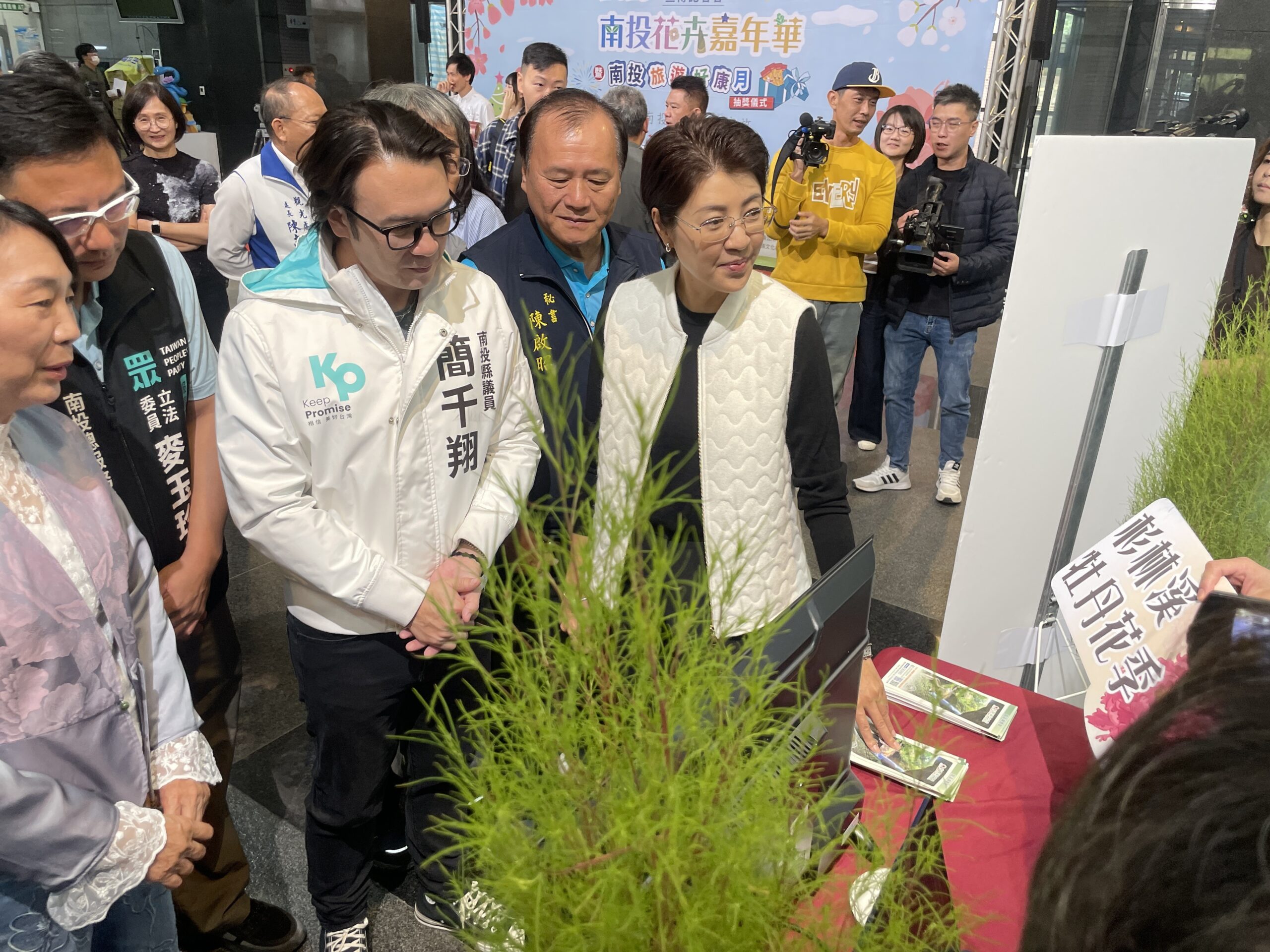 「每年11月至隔年3月櫻花、梅花、牡丹花等各種花類百花齊放,縣府都會結合每個鄉鎮不同花季與產業,舉辦花季嘉年華活動,吸引遊客採買當地農特產品。」許縣長表示,此次南投旅遊月推出總價值近千萬元的獎勵,只要在縣內合法店家消費滿500元即可憑發票參加抽獎,獎項包含特斯拉、Gogoro、高級飯店住宿券、iPhone、Switch、南投遊程體驗券與在地大禮包等超過 800 個獎項,吸引消費金額破億元,26日在南投花卉嘉年華記者會同時抽獎,許縣長按紐先抽出特等獎特斯拉得主,獎落中興新村王小姐,她接到縣長祝賀電話時,高興直呼好高興,她很支持許縣長,只要有休假就去旅遊消費挺南投。