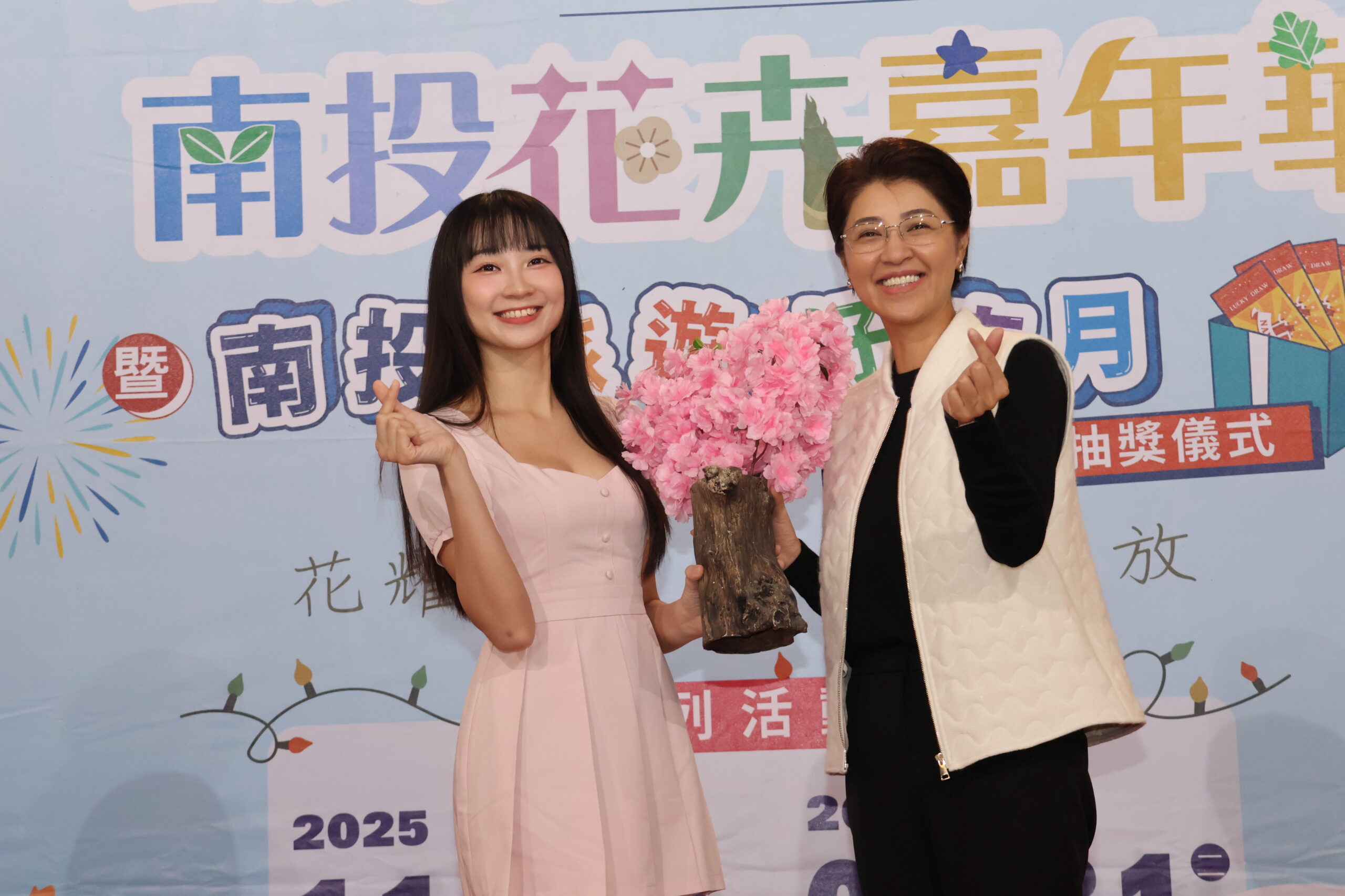 2025南投花卉嘉年華正式啟動 從全國最大花卉產區「埔里」串聯11鄉鎮市冬季至春季花季活動 打造連續四個月的超大型觀光季 現場同時抽出南投旅遊好康月特等將特斯拉得主 中興新村王小姐消費650元抽中特斯拉