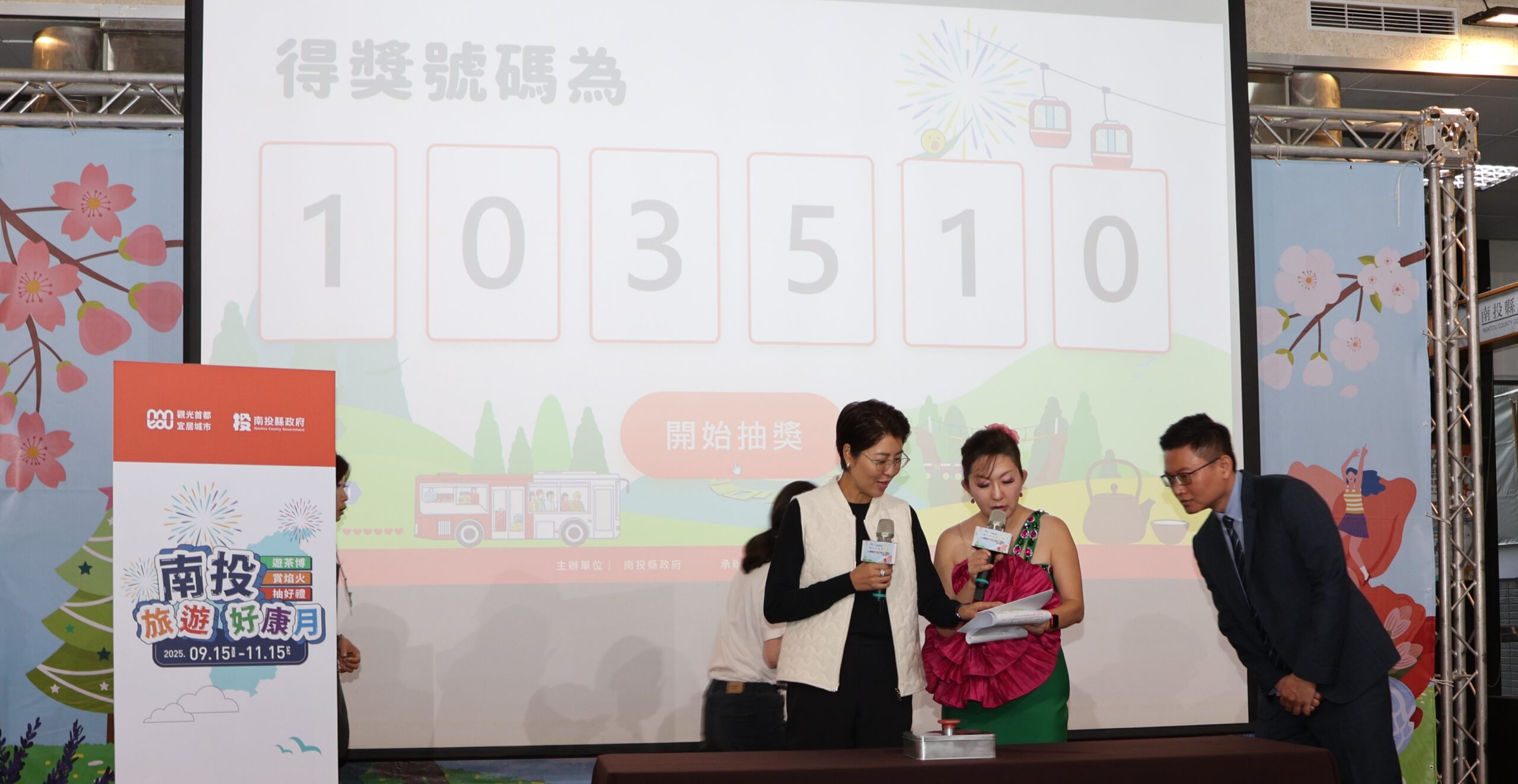 縣長許淑華主持,並抽出「南投旅遊好康月」最受矚目的壓軸大獎—特斯拉得主,由中興新村王小姐於十月底用餐消費650元抽中特等獎。