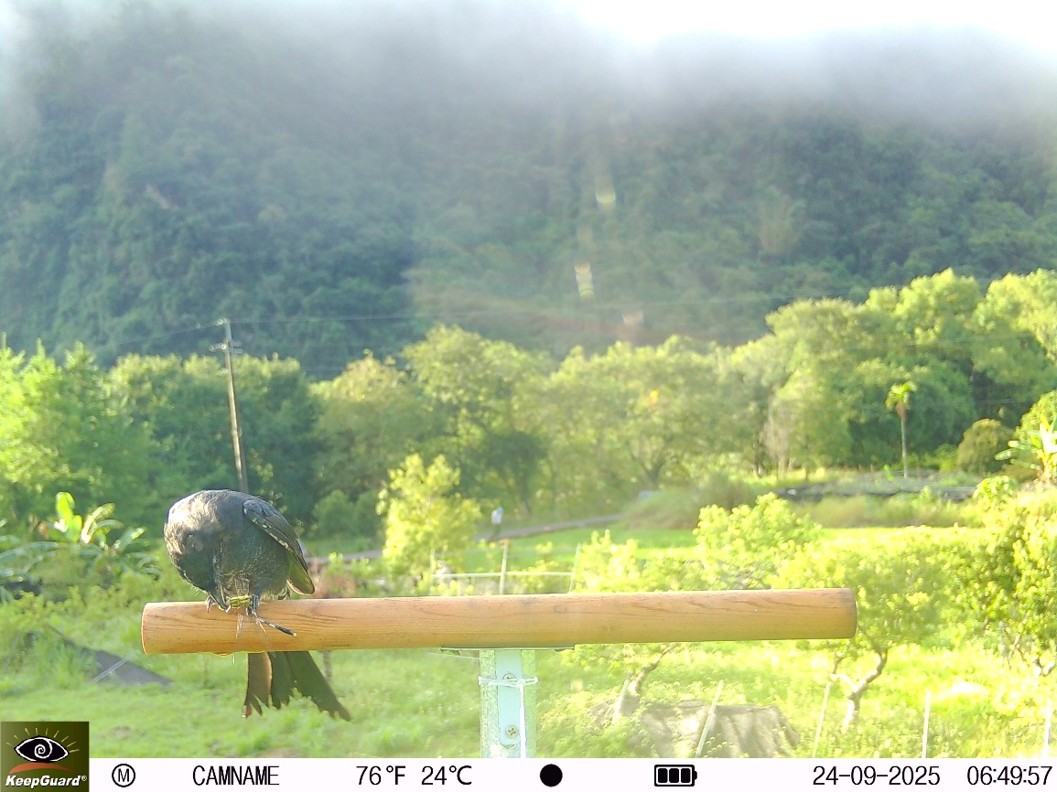 生多所專家在川中島農業區監測鳥棲架上活動的掠食性鳥類,捕捉到大卷尾在棲架享用捕捉到之蜻蜓獵物。圖/生多所提供