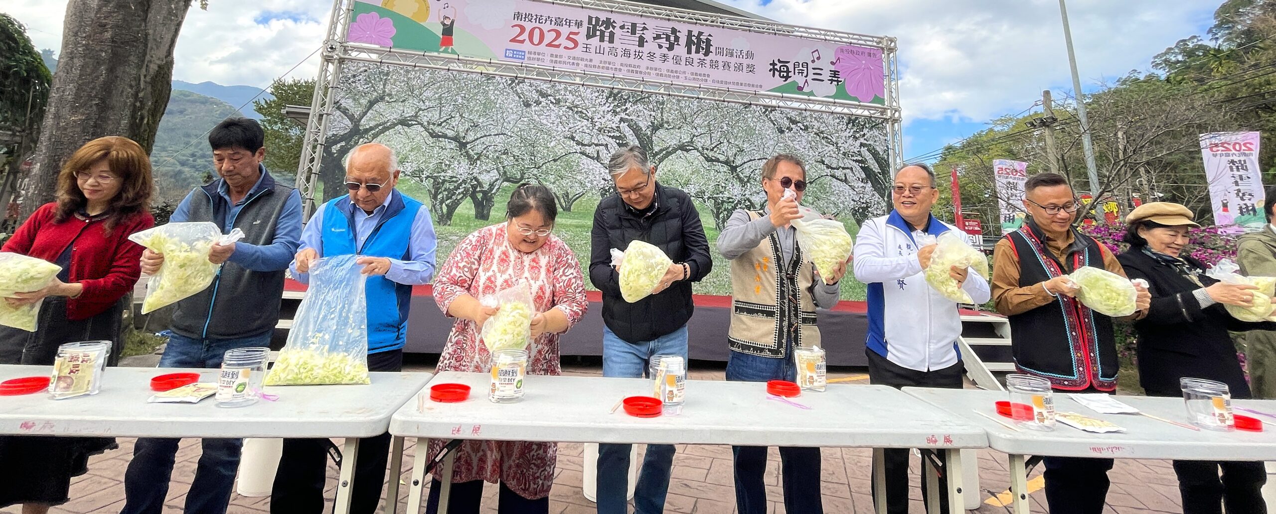 2025南投花卉嘉年華之踏雪尋梅梅花季27日信義鄉農會梅子夢工廠啟動 好康活動梅子泡菜DIY待客 現場與預約報名各占一半名額 梅開三弄主題首輪同時開鑼