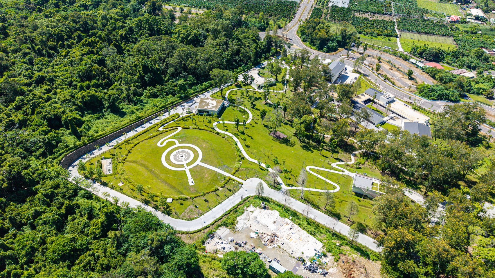 南投草屯九九峰遊憩園區結合九九峰地區特殊山勢與自然景觀,採低衝擊、友善環境工法,更是全台首座氦氣球樂園,明年二月開園前就先獲114年公共工程金質獎肯定加持。圖/南投縣政府提供