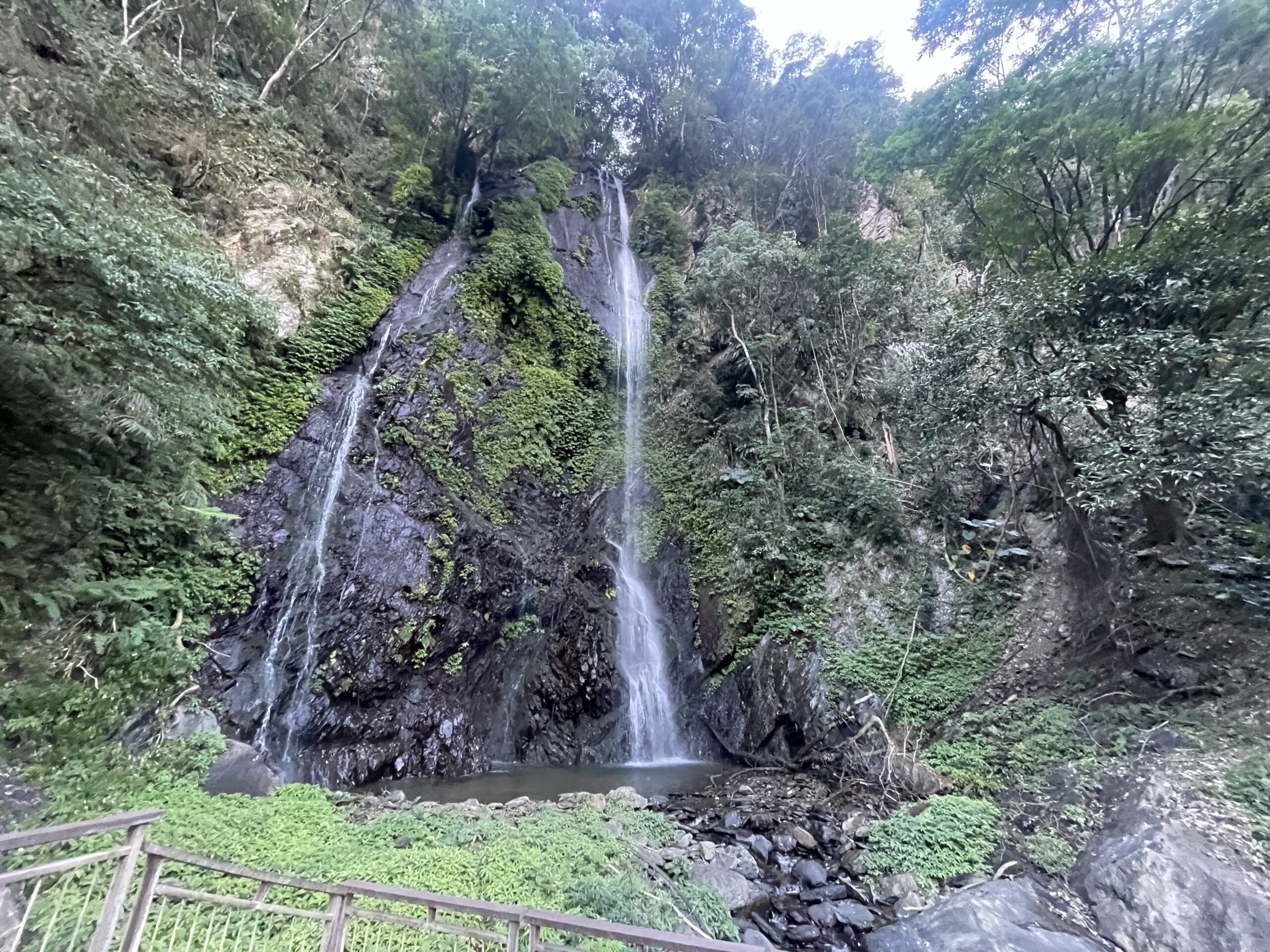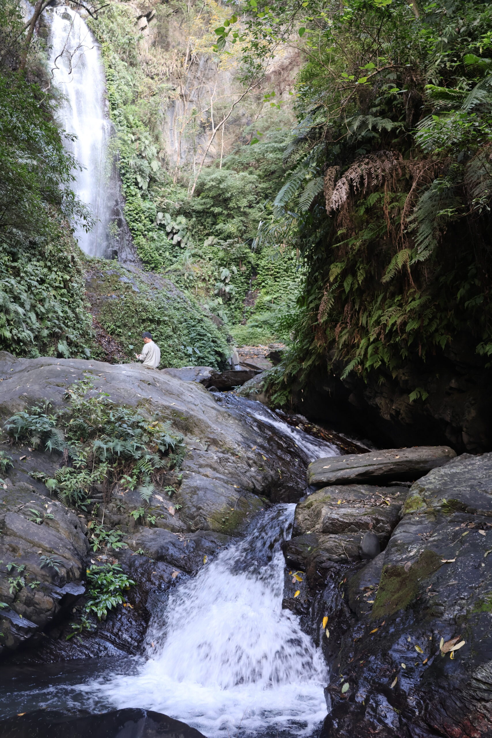 埔里鎮氣勢磅礡景觀優美的觀音瀑布則有3層,沿途有多座大小瀑布群,這是最上層的雄偉瀑布,即使入冬水量小仍很壯觀。