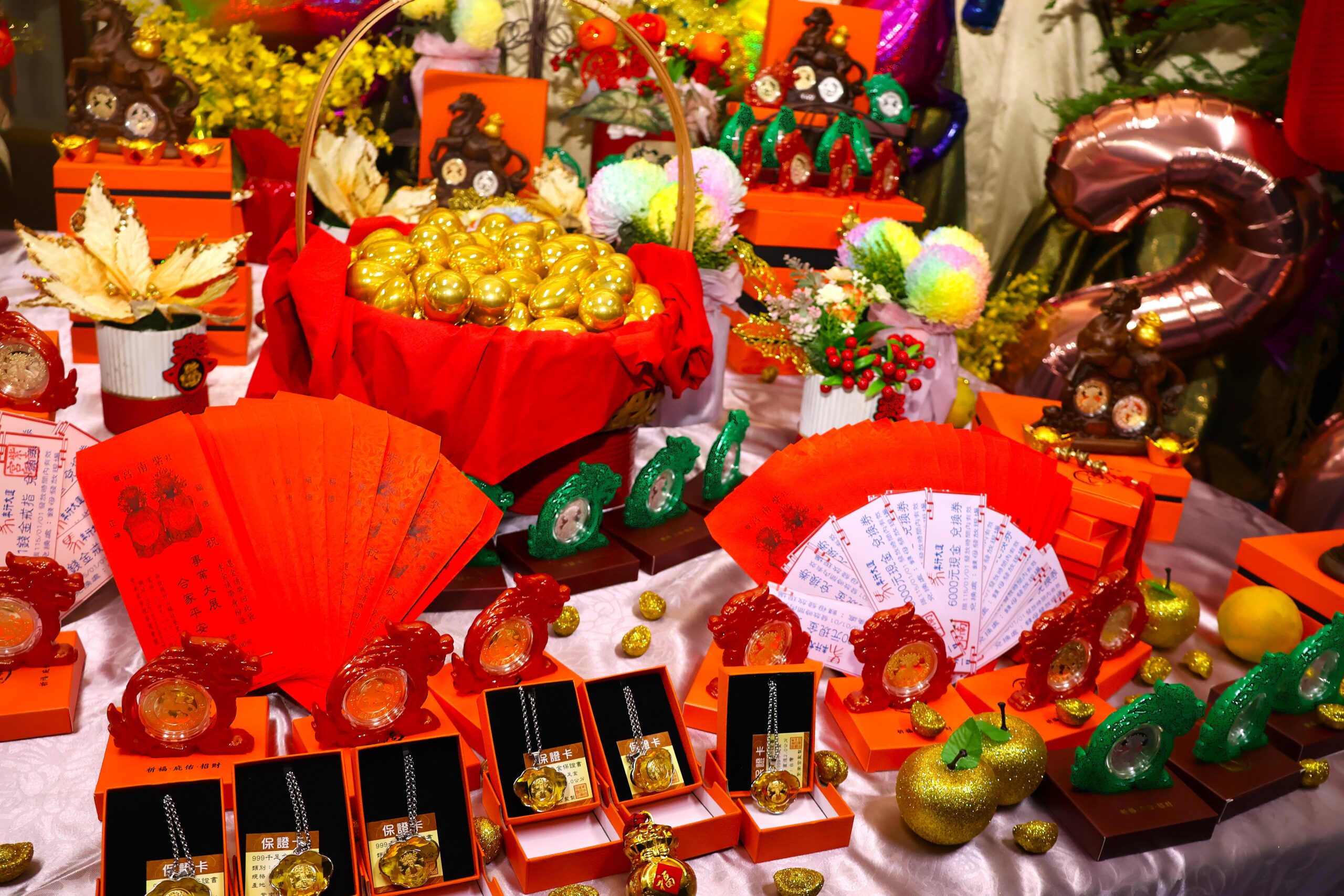 (今年金雞蛋兌換券含壹錢戒指15只、現金6000元紅包20包、馬上發財套幣精裝組1200組、馬年福氣項鍊300條、馬年福氣金、銀錢母1000組,馬年金錢母2465個。)