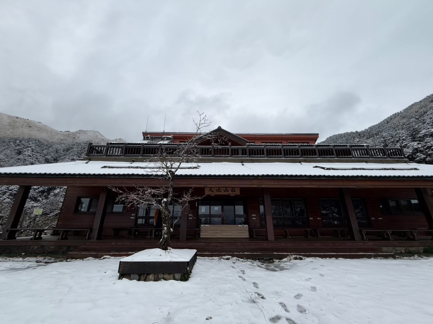 天池山莊因管理人力匱乏,無法運補物質,元旦起開放但僅提供基本住宿及營位申請,這是12月27日雪景,目前雪已融化。圖/保署南投分署