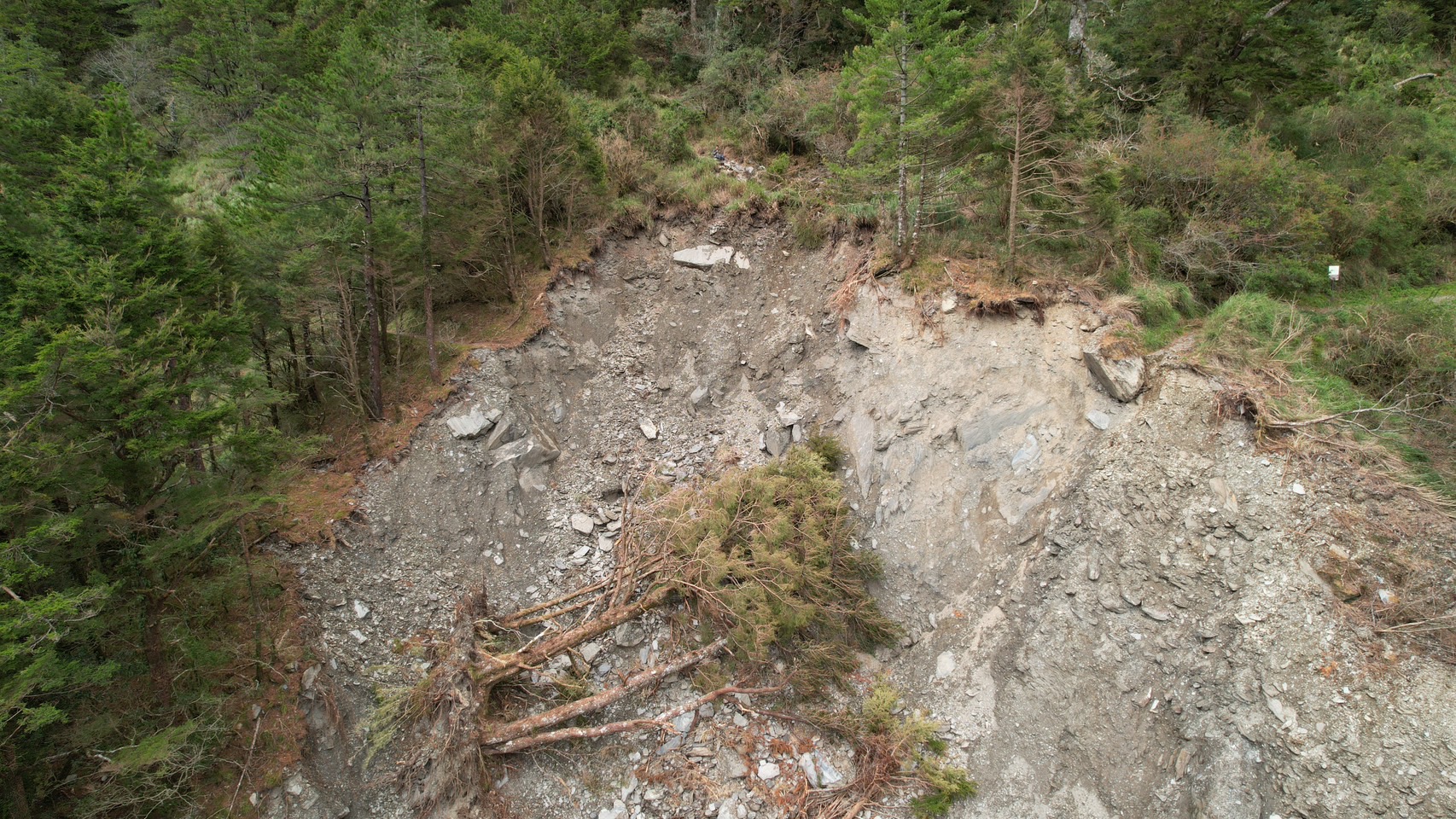 能高越嶺國家步道西段接續受杜蘇瑞、卡努、凱米颱風及0403花蓮大地震嚴重災害    步道里程0-1K等多處上下邊坡崩坍嚴重   搶通仍續崩坍