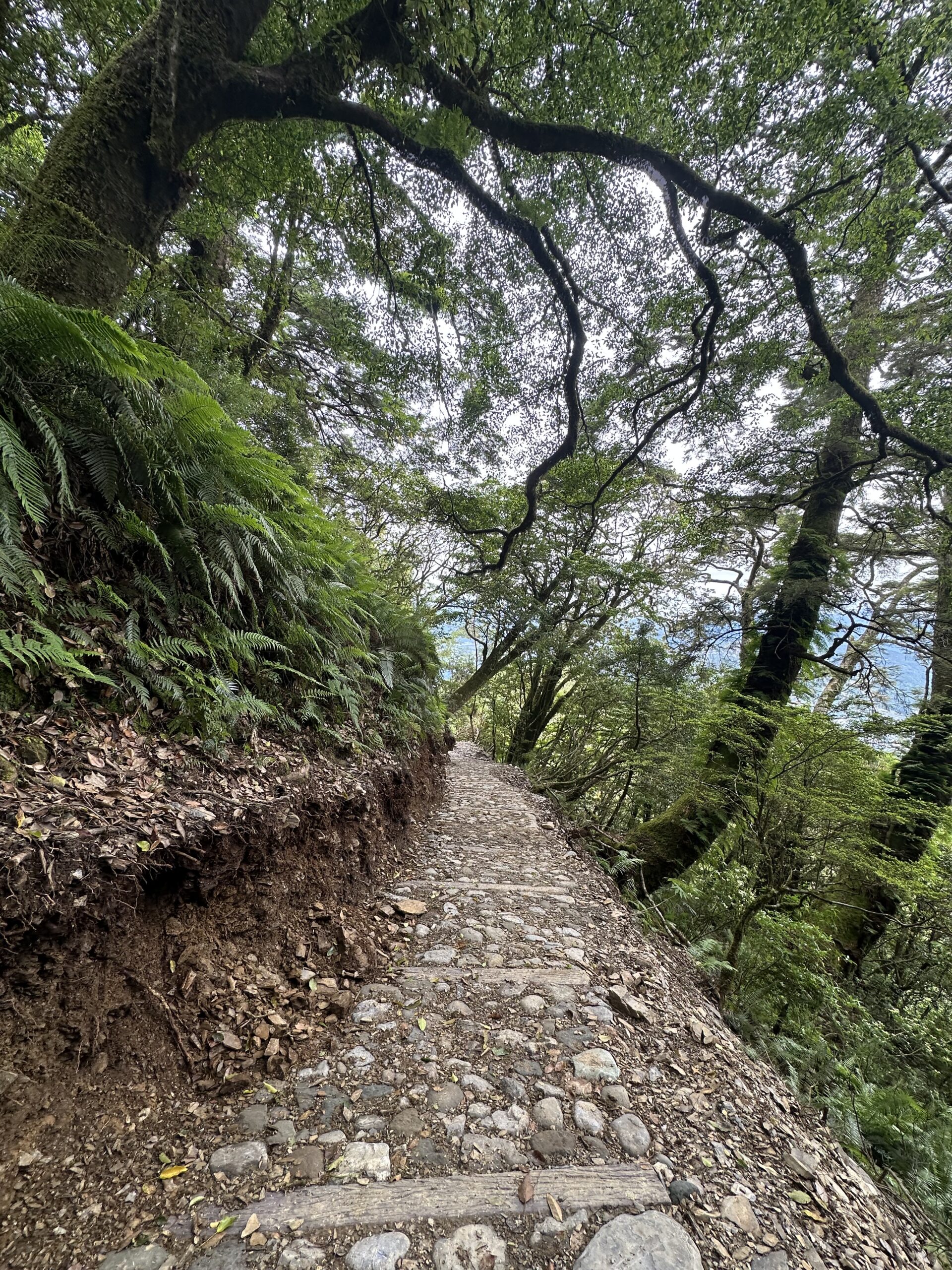 能高越嶺西段雲天宮路線原本遇雨溼滑泥濘,重新施工以砌石改善,坡度也比較平緩好走。圖/林保署南投分署提供