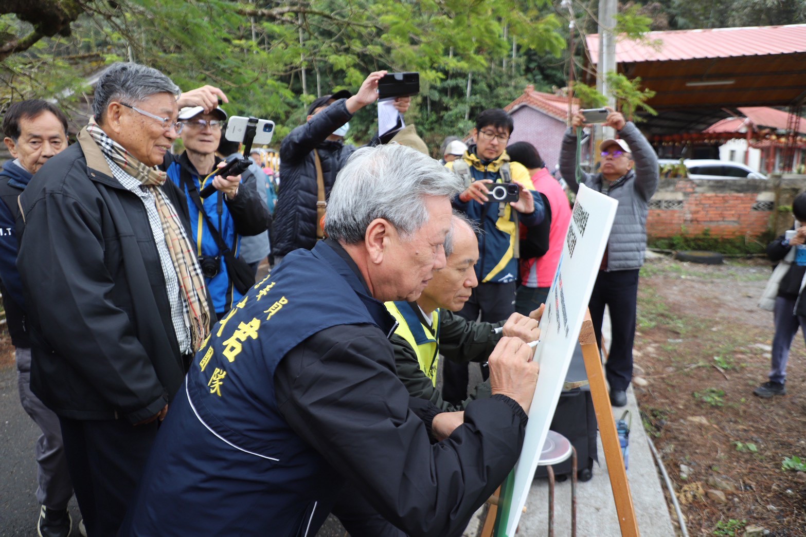 記者會中馬文君立委辦公室楊樹煌執行長、埔里鎮長廖志城、多位縣議員、村里長、地方文史工作者、醫師及青農代表齊聚,會前先參拜天仙宮玄天上帝,祈求神明賜給力量,助鄉親抗爭成功,讓業者撤案。