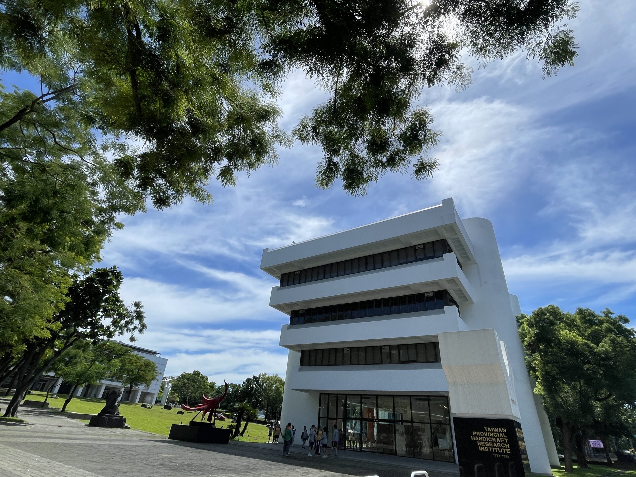充滿工藝思想的步道沿線的植栽從1954年顏水龍於南投草屯創立「南投縣工藝研究班」首屆師生親手栽植的小實孔雀樹,另一側鳳凰木則可追溯至日治時期。