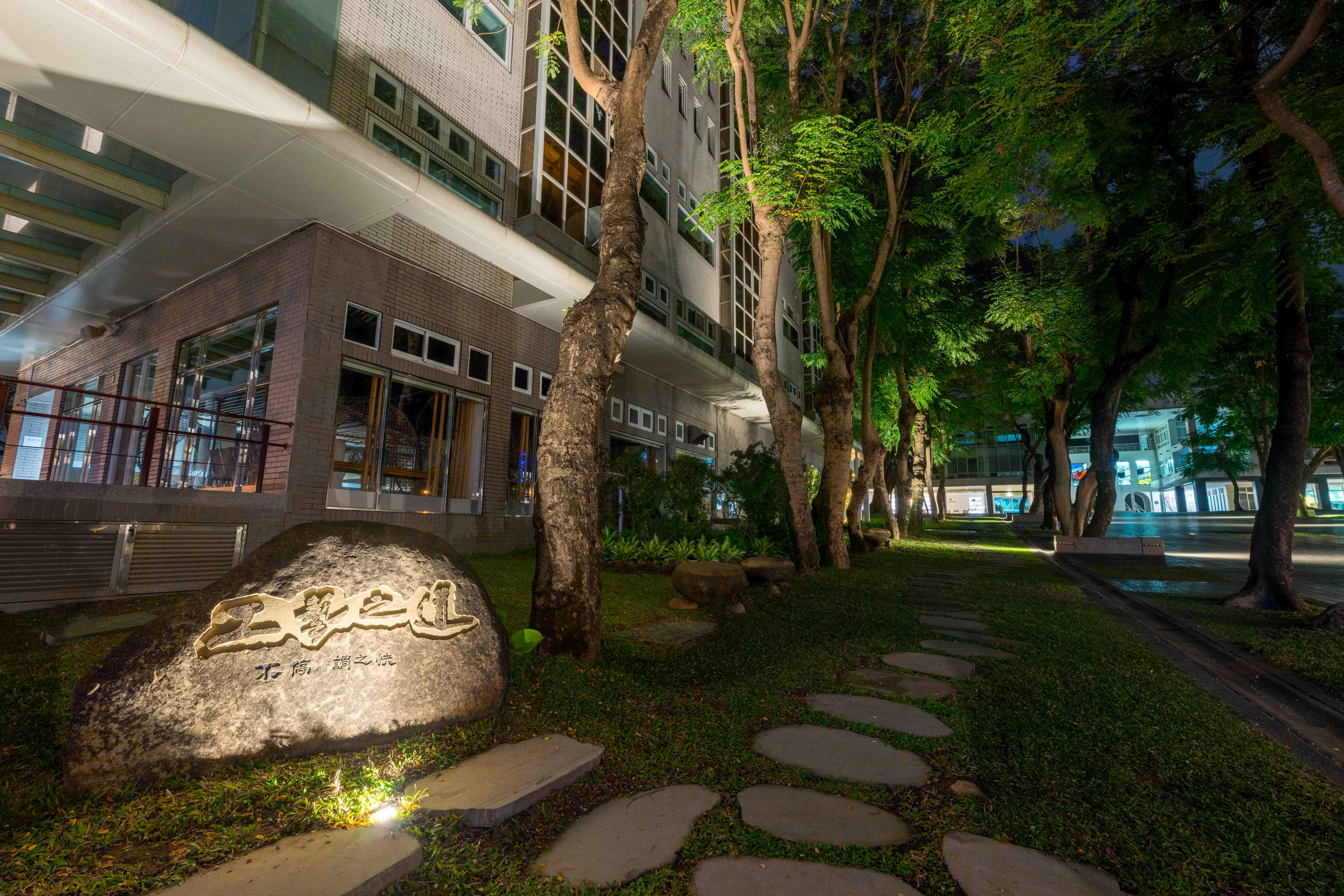 工藝之道」以永續思維進行空間再造,光環境營造,步道於夜間亦能展現溫潤光影 。