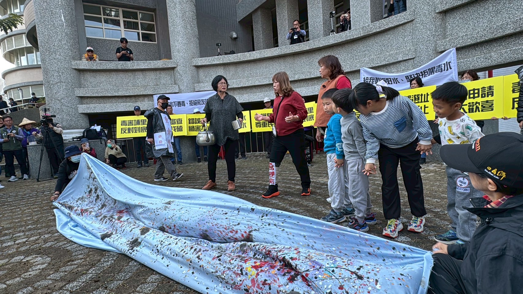 立委羅美玲也到環評會外邊要業者撤回廢棄物掩埋場申設案。圖/反對埔里設置廢棄物掩埋場大聯盟
