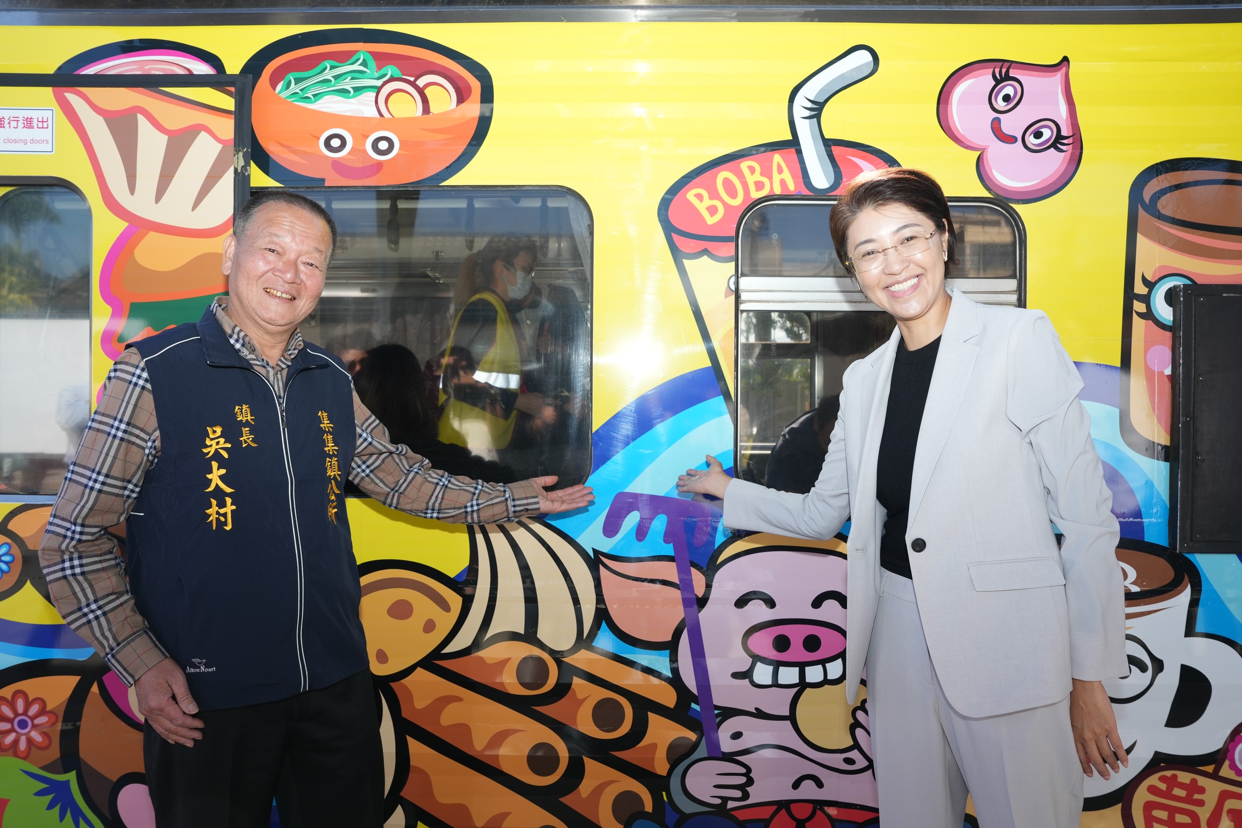 藝術家洪易更到場解說以其「西遊記」創作結合集集特產山蕉美食、保育類石虎及南投山色,打造宛如「行走的藝術品」的彩繪列車精髓,當滿載遊客、閃現色彩斑斕圖案的「西遊記」主題彩繪列車,緩緩駛進集集火車站,更令圍觀人潮驚艷、亮瞎全場;集集鐵道行旅迎接集集鐵路火車復駛到集集,即日起至一月底止,遊客憑火車票根來鐵道行旅兌換泡沫紅茶☕️。