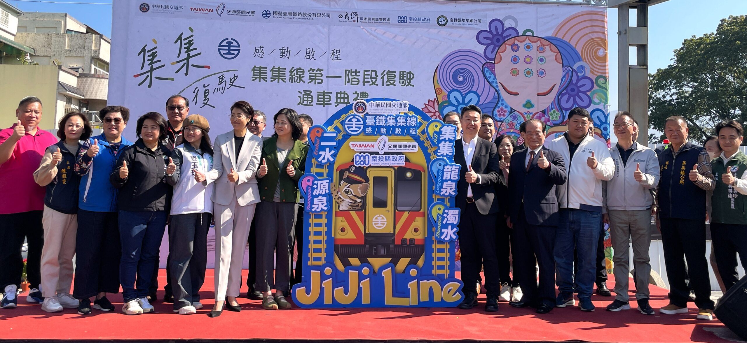 地方以辦喜事心情迎接復駛 交通部長陳世凱 南投縣長許淑華與立委游顥與麥玉珍 觀光署長陳玉秀 臺鐵董事長鄭光遠 行政院中辦執行長陳錦倫 集集鎮長吳大村等偕同鄉親見證首航復駛典禮