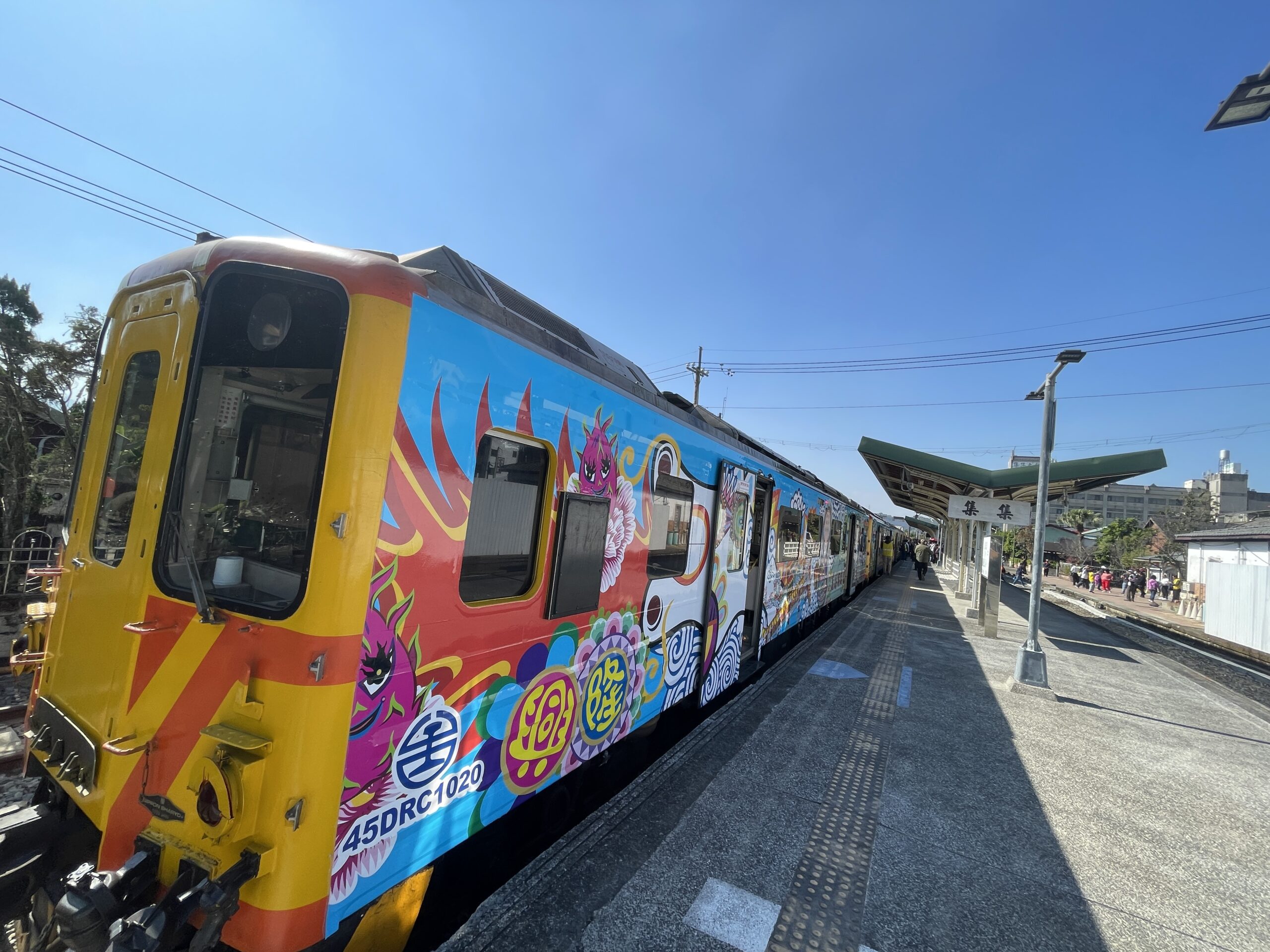 因天災停駛進行四年四個月遫建的台鐵集集支線,今天(1/5)復駛通車至集集站,由藝術家洪易打造專屬彩繪列車也首度亮相。