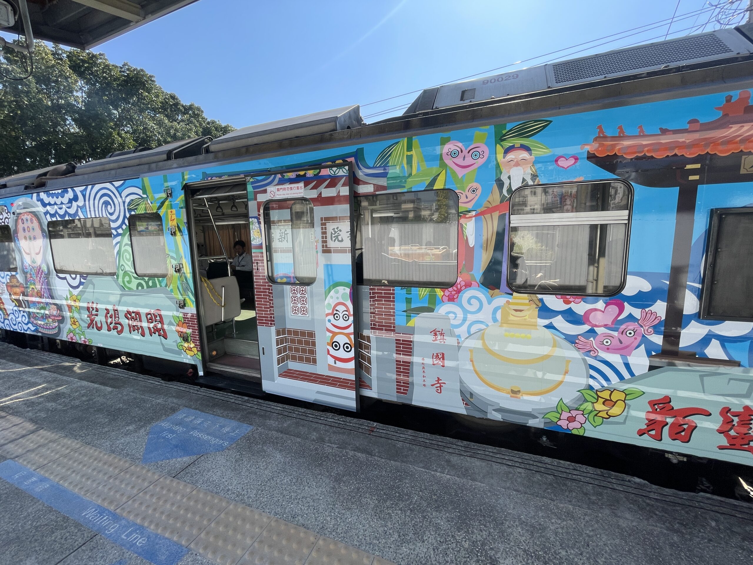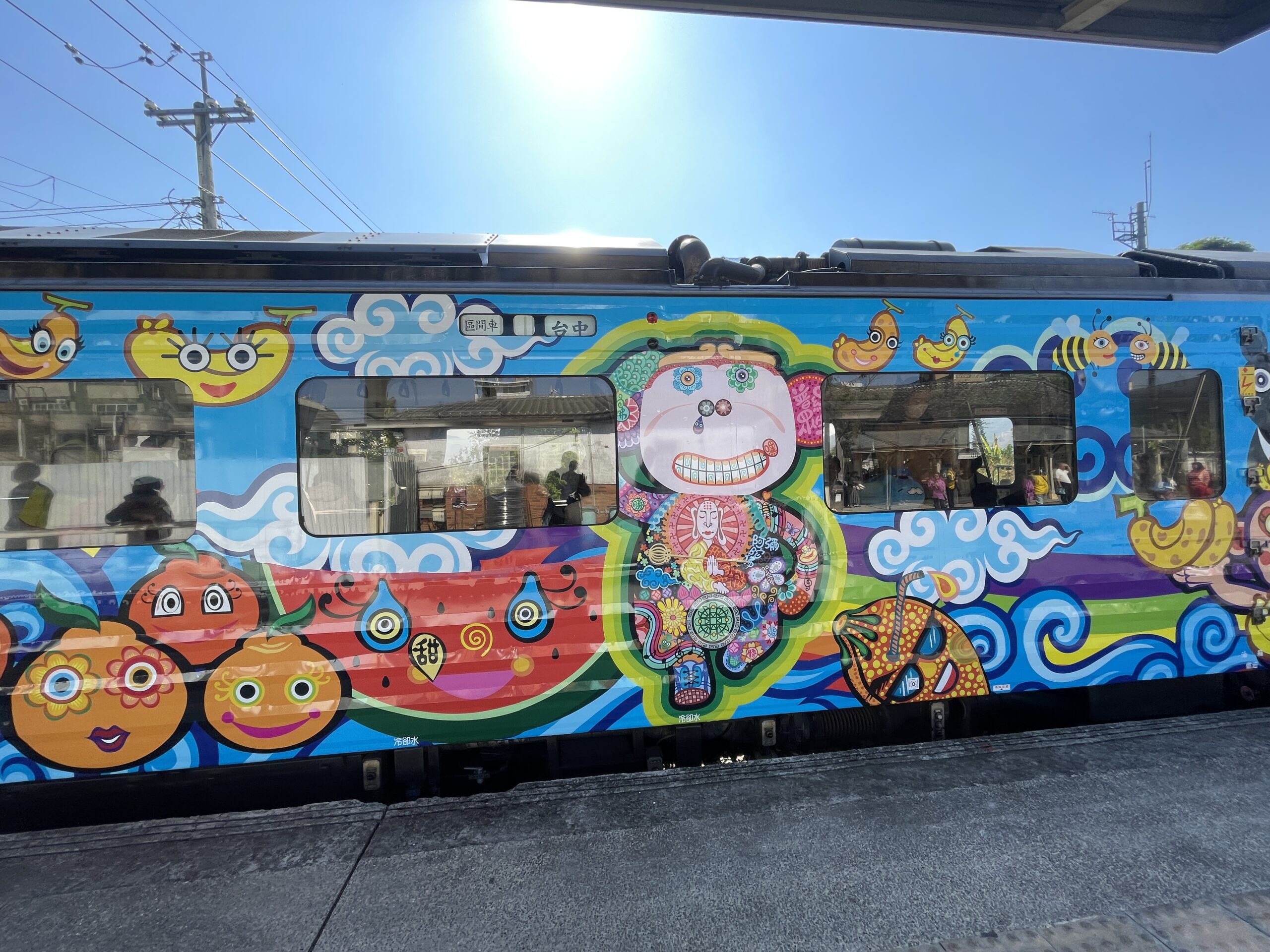 藝術家洪易以其「西遊記」創作結合集集特產山蕉美食、保育類石虎及南投山色,打造宛如「行走的藝術品」的彩繪列車超吸晴。
