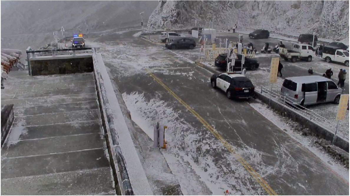 強烈冷氣團發威 合歡山從海拔兩千公尺清境以上至松雪樓 從今(8)日上午8時許至11時許持續飄降冰霰或雪霰交加 松雪樓至昆陽山野披上一面薄雪 今晚5時起合歡山公路翠峰至大禹嶺預警性封閉 玉山雪霰交加出現霧淞美景