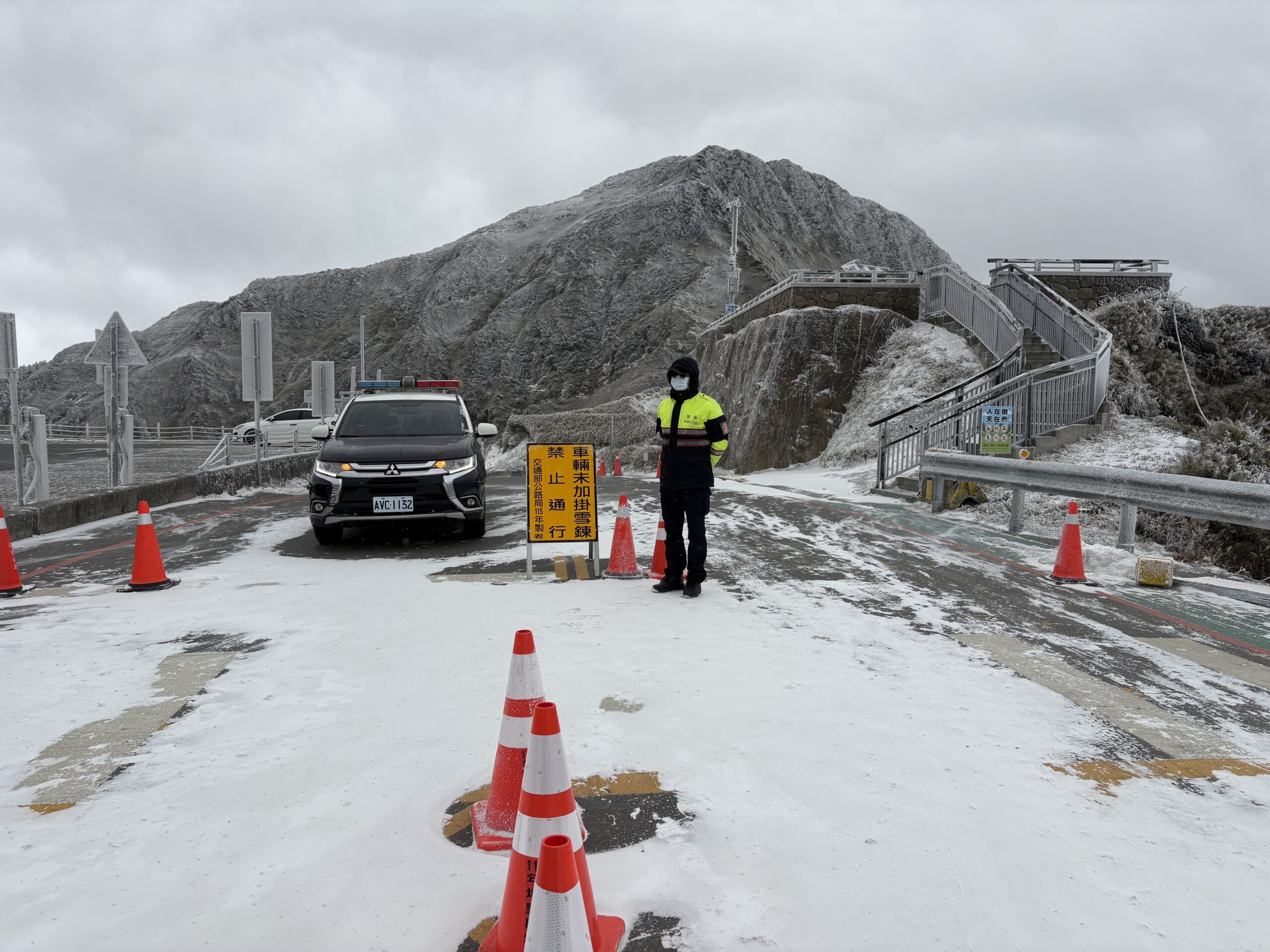 道路薄雪入夜降溫容易結冰更濕滑 道路薄雪入夜降溫容易結冰更濕滑 翠峰至大禹嶺路段夜間封閉 武嶺至松雪樓崎嶇蜿蜒 路面結冰易發生打滑雙向封閉