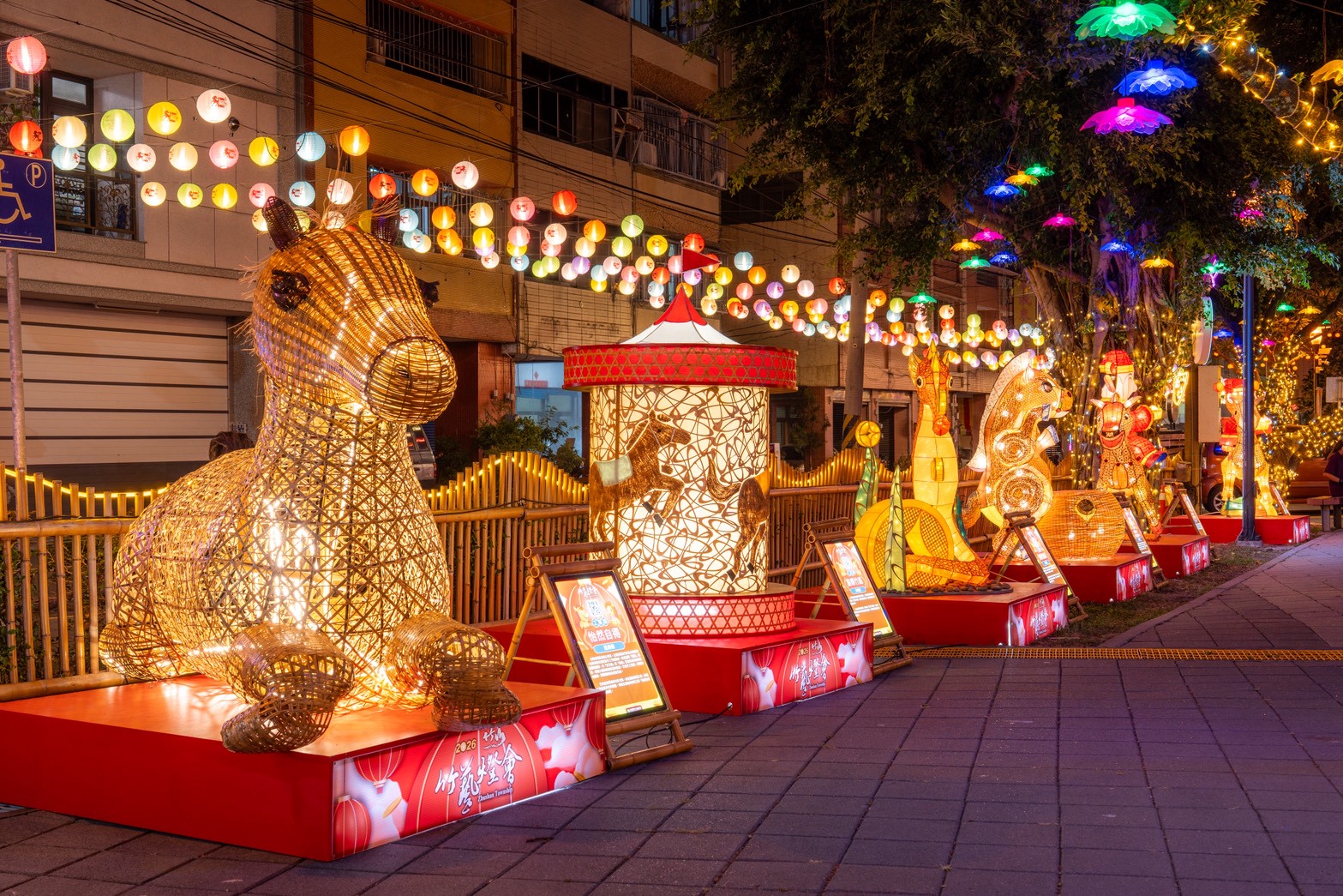 時序進入馬年,迎新春最大夯的就是以馬做主角的燈會,其中這場「2026竹山竹藝燈會」則邀請邱錦緞等25名竹工藝師打造不同造型充滿創意竹藝創作展出,即日起至3月7日於竹鎮山鎮菸葉館盛大展出,很有看頭喔!鎮長陳東睦邀請民眾走進竹山小鎮,徜徉於光影與竹藝交織的冬日夜晚,感受溫暖的年節氛圍。今年燈會適逢馬年,以「馬」為主題,結合竹山最具代表性的竹藝文化,打造全台灣獨一無二的竹藝燈會。