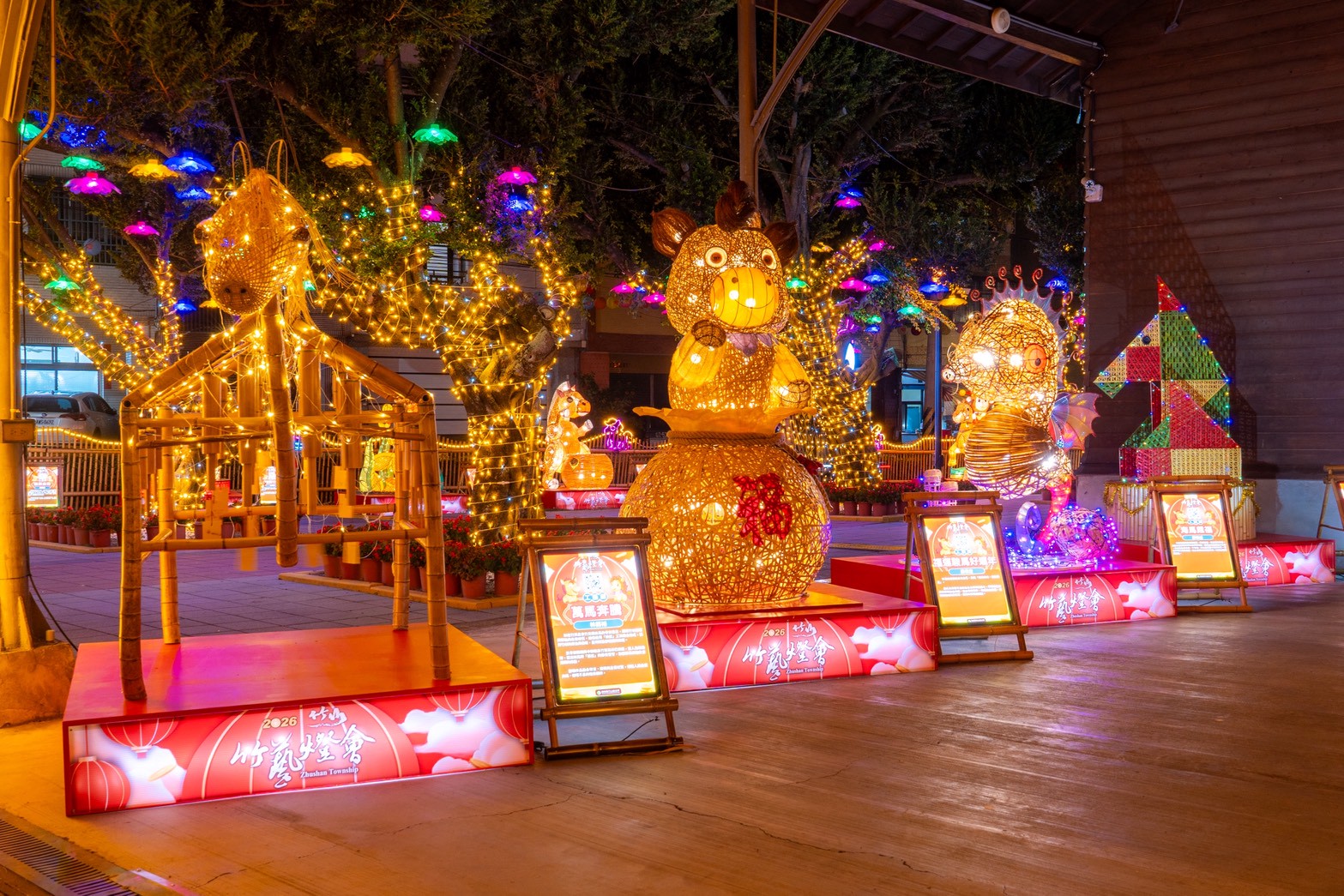 竹山竹藝燈會舉辦至今邁入第七年,即日起至3月7日,燈區設置於菸葉館、連興宮、母愛公園等地。燈會期間每週五、六、日及春節期間(初一至初六),主燈區現場安排了豐富多元精彩的表演出,邀請各地民眾攜家帶眷來竹山,賞花燈、拍照、漫遊老街,一起感受竹山最真摯的人情味與在地文化魅力。