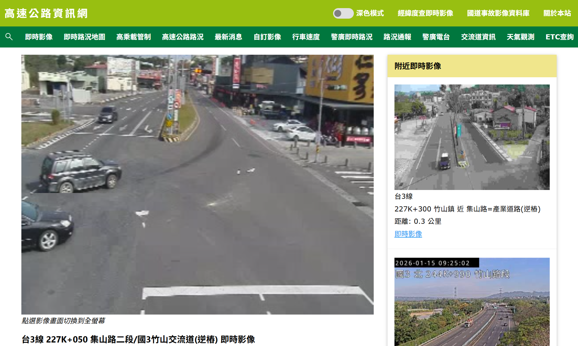竹山鎮臺3線227.7公里處測速桿,去年取締超速共3,594件居第四名。圖/截圖自高速公路即時影像