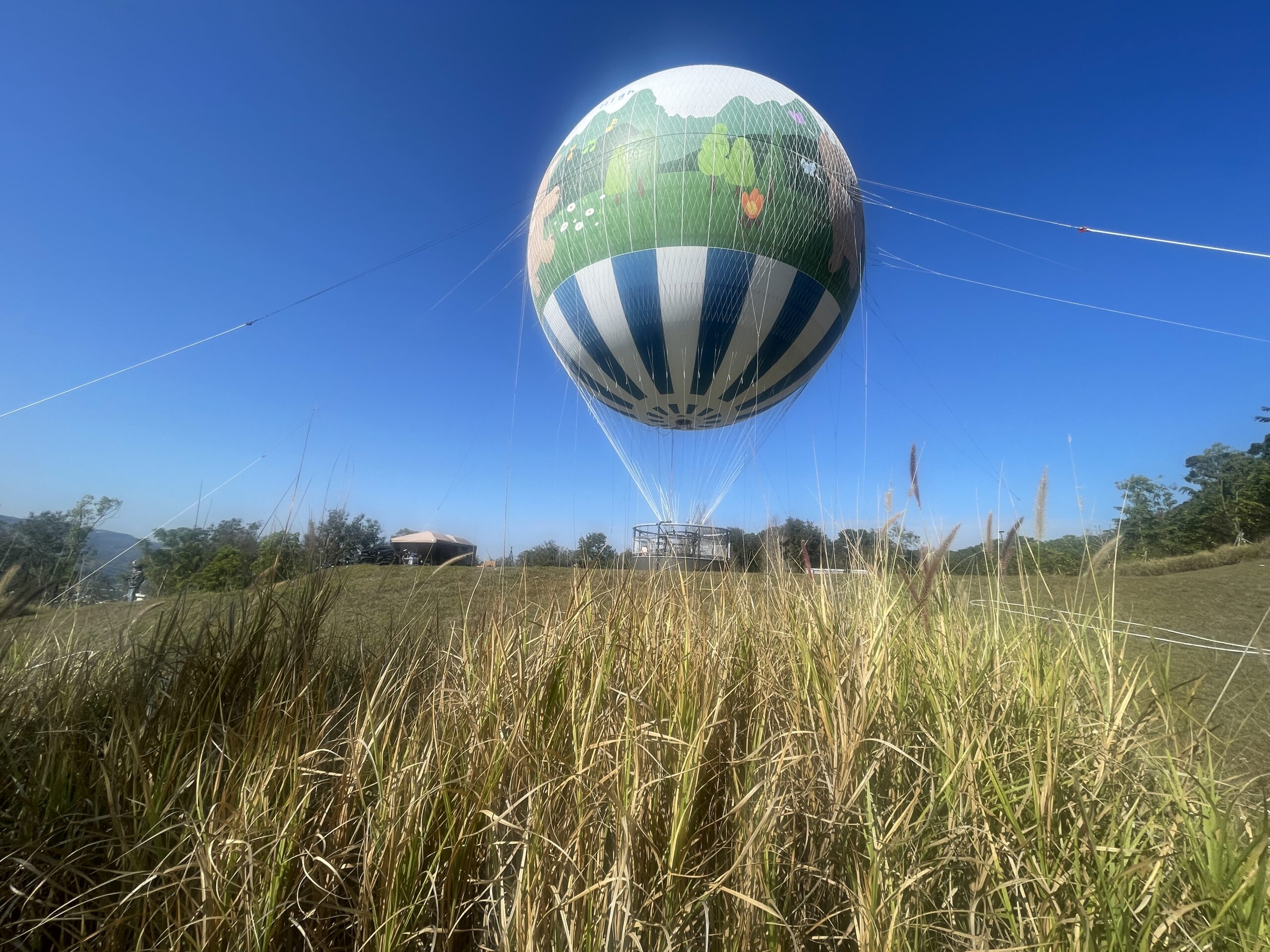 繫留式氦氣球透過固定纜繩與地面主機控制升降高度 全天候皆可飛行 高空觀景看夜景體驗能在可控條件下進行 馬年新春到南投走春搭氦氣球